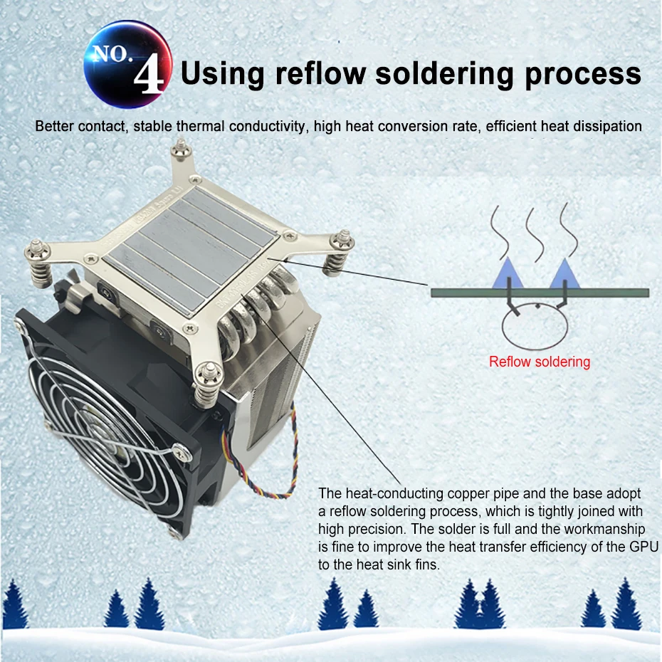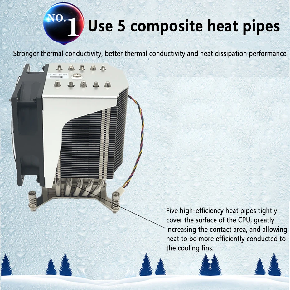 Material: base de cobre + aletas de cobre + 5 tubos de calor