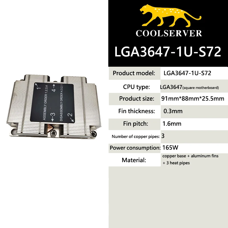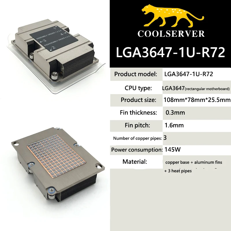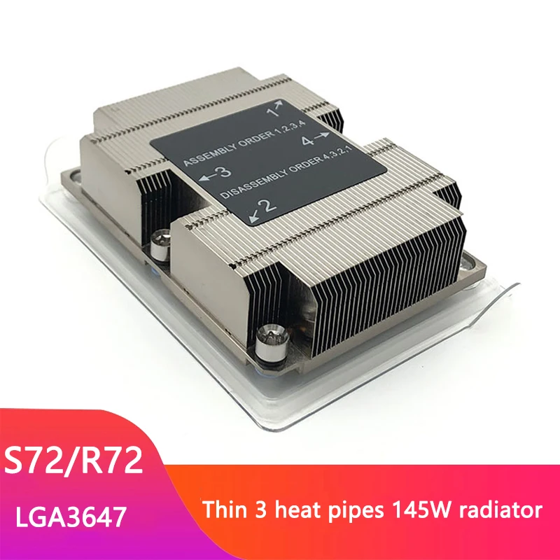 Comprar COOLSERVER-enfriador de CPU R72 S72 1U, 3 tubos de calor, estación de trabajo, ordenador de escritorio, ventilador de refrigeración silencioso, radiador para Intel LGA3647