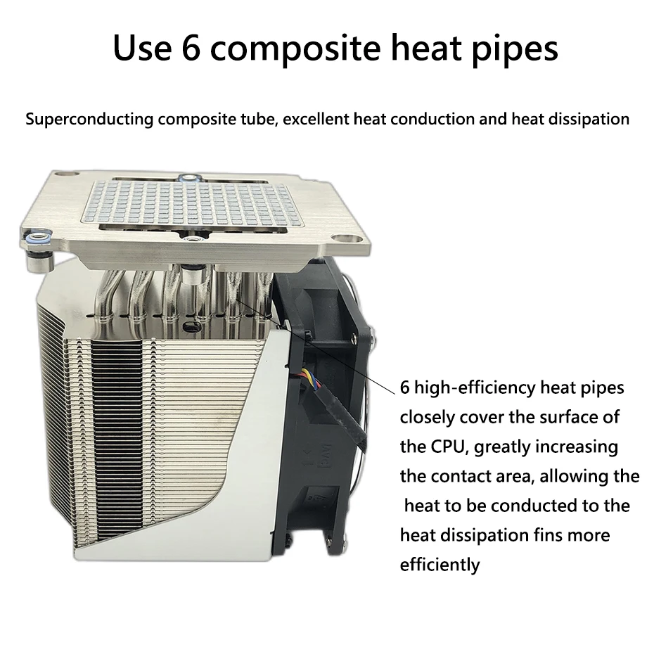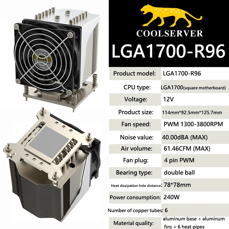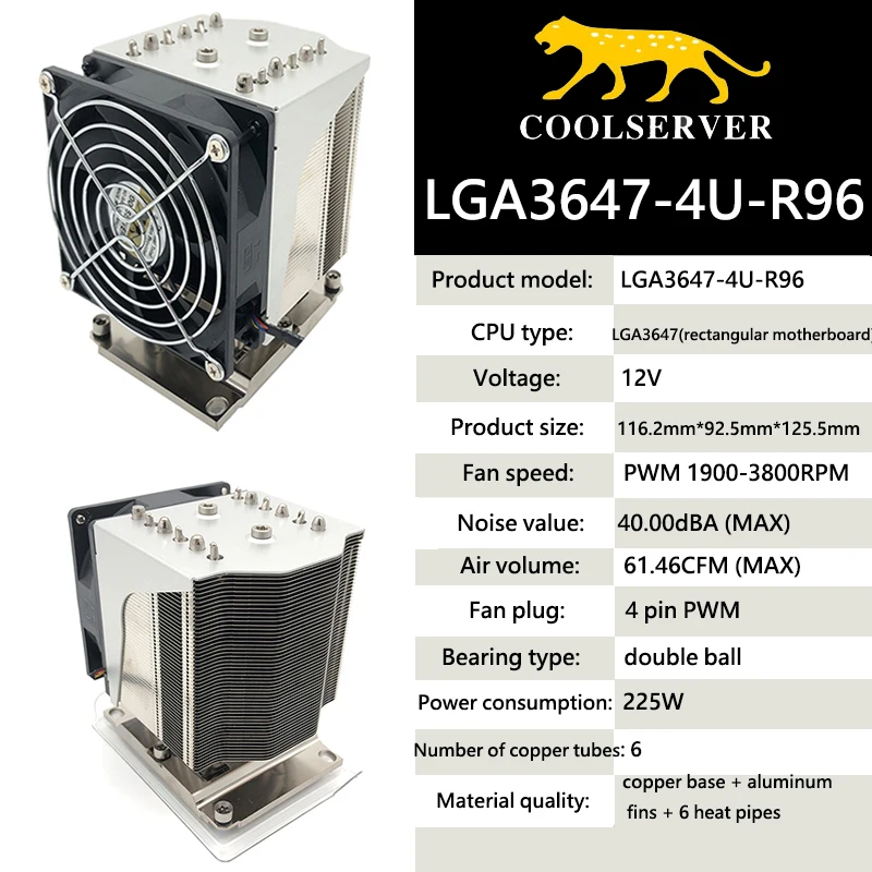 Comprar COOLSERVER-enfriador de CPU R96 4U, 6 tubos de calor, ventilador de refrigeración de escritorio, radiador de iniciativa para LGA3647 LGA1700