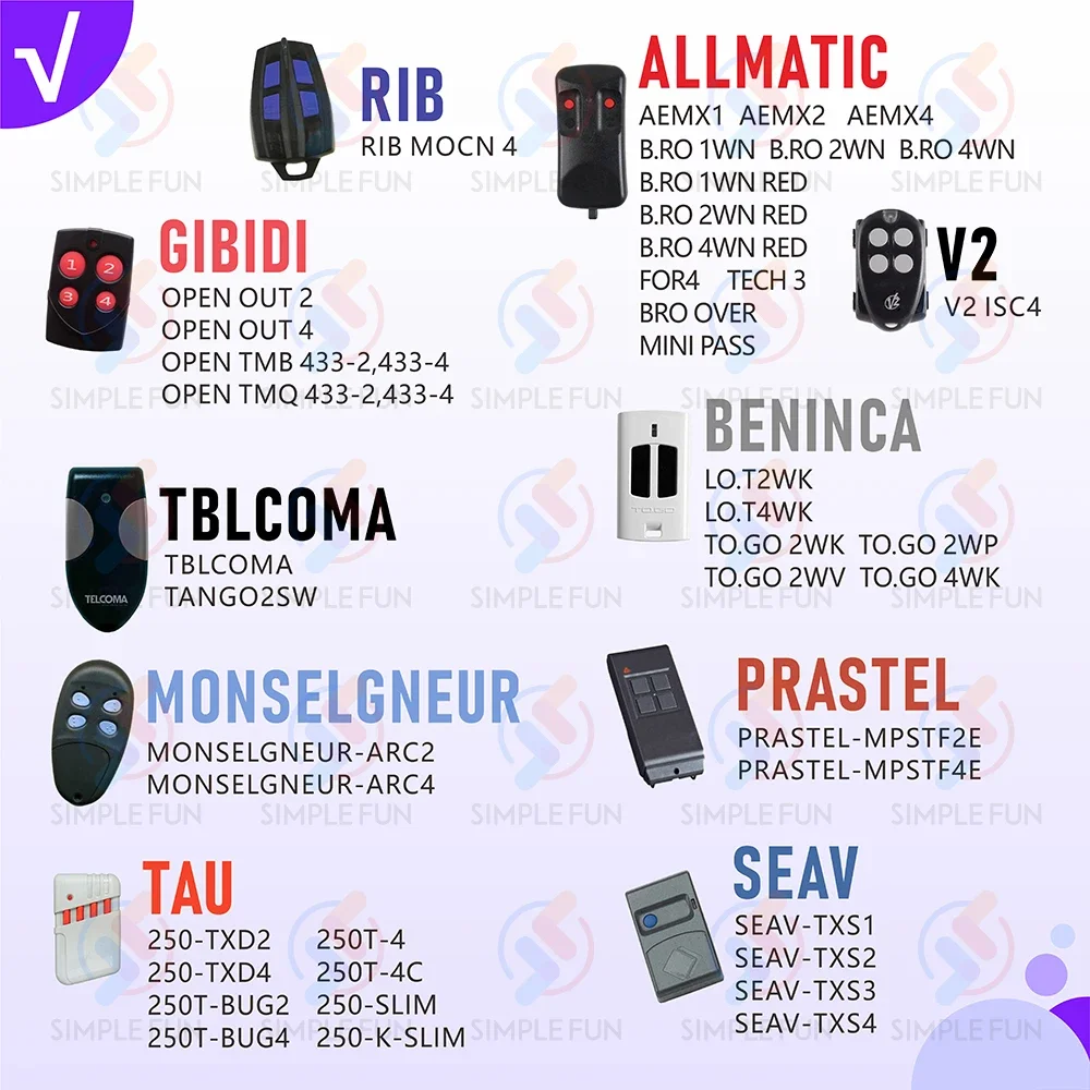 Diseño de 4 canales ●El diseño de 4 botones es adecuado para controles remotos con múltiples tipos de funciones.Cada botón se puede copiar individualmente a la función de botón correspondiente del control remoto original. Los productos se pueden utilizar en hogares, granjas, fábricas, oficinas, laboratorios, supermercados, etc. Puerta de garaje con control remoto \ Puerta eléctrica \ Puerta de casa \ Puerta contraventana \ Puerta de expansión \ Puerta de puerta \ Puerta de carretera Control remoto Cortina eléctrica \ Bomba de agua \ Ventilador \ Lámpara \ Luz LED \ Bombilla \ Dispositivo de ventilación \ Transmisión de señal Motor de control remoto rotación positiva y negativa \ interruptor de motor \ bricolaje