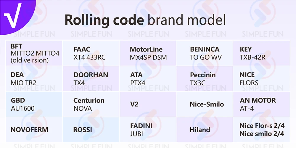 Nota: Hay aproximadamente tres tipos de controles remotos en el mercado: controles remotos de código fijo, controles remotos de código de aprendizaje y controles remotos de código variable. Nuestro control remoto de copia puede cubrir la mayoría de los controles remotos de código fijo y código de aprendizaje, y puede cubrir algunos controles remotos de código variable (los modelos específicos se enumeran a continuación).