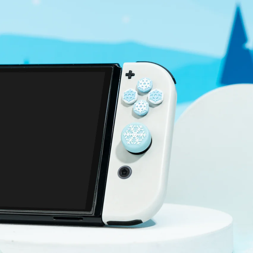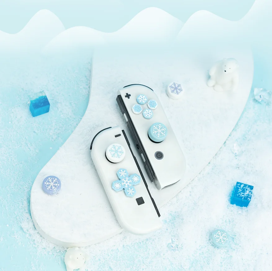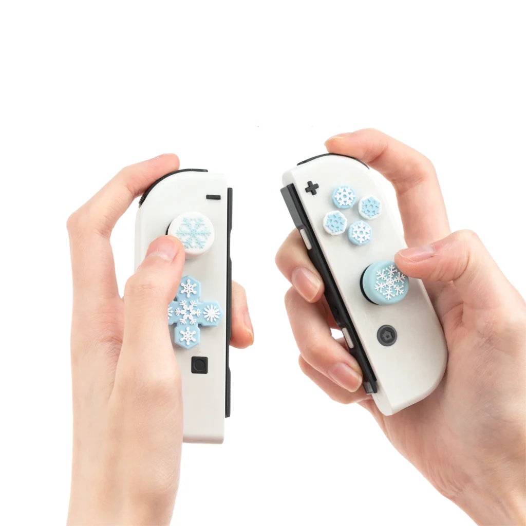 Comprar Copo de nieve d-pad botón cruzado ABXY pegatina de llave Joystick Thumb Stick Grip Cap cubierta para Nintendo Switch Oled NS Joy-con funda de piel