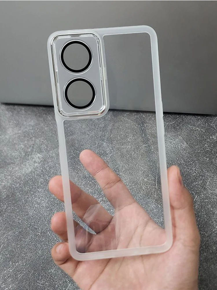 Comprar Coque Funda de teléfono sencilla de lujo para OPPO A97 5G, protección de cámara de silicona suave, película de lente de vidrio acrílico, Funda trasera Original