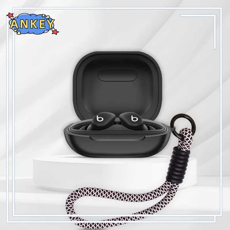 Coque en Silicone pour Beats Powerbeats, étui en Silicone avec crochet, protection antichoc pour écouteurs sans fil avec corde tissée