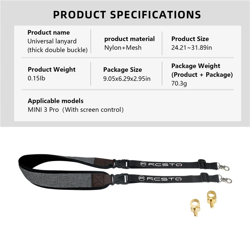 1.Adecuado para el control remoto de pantalla DJI Mini 3 4 Pro. La longitud de la cuerda se puede ajustar. Compatible con todos los controles remotos DJI con pantalla.