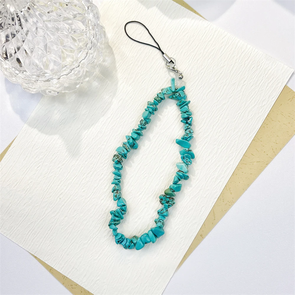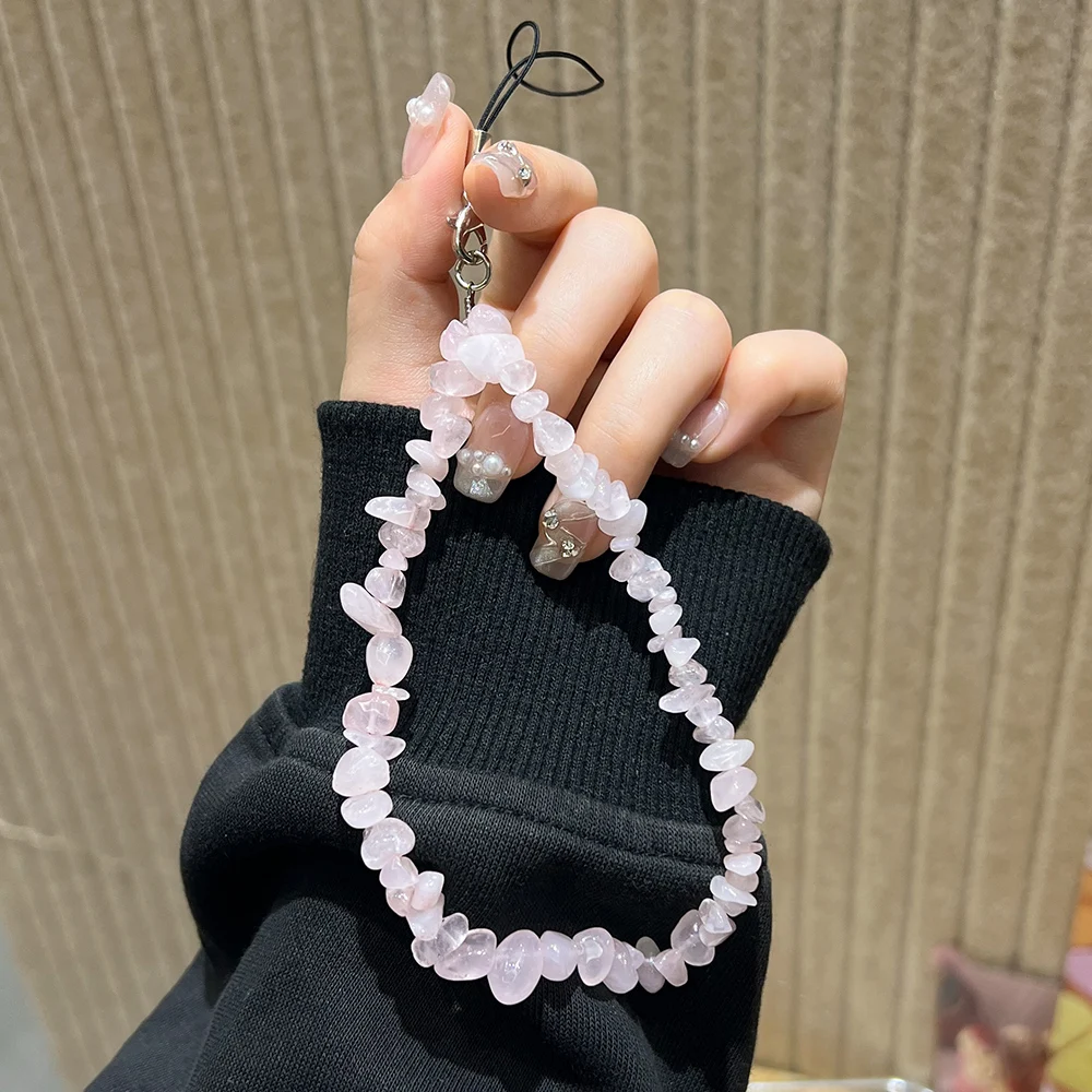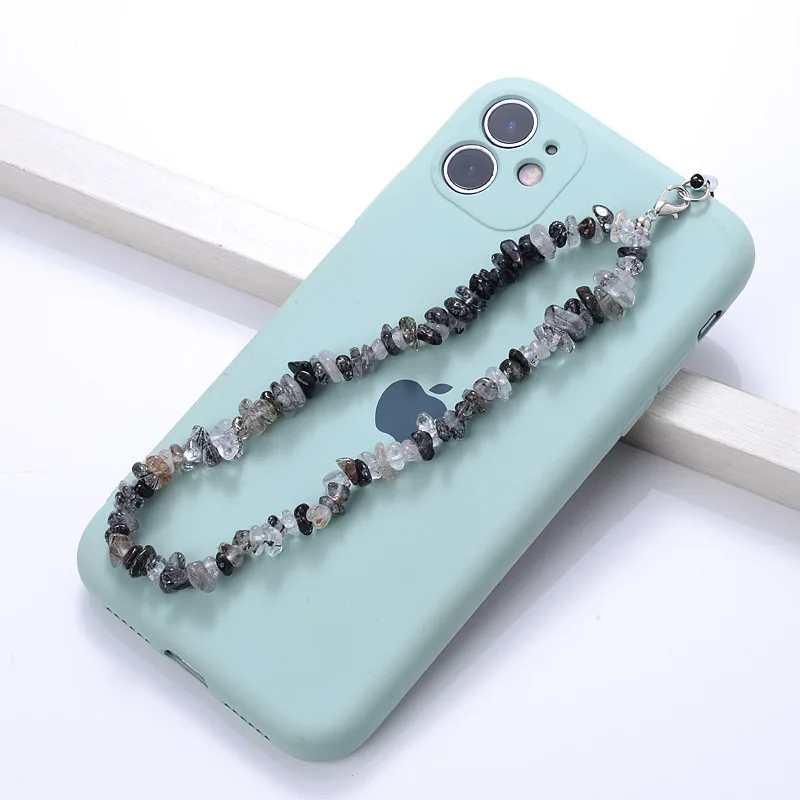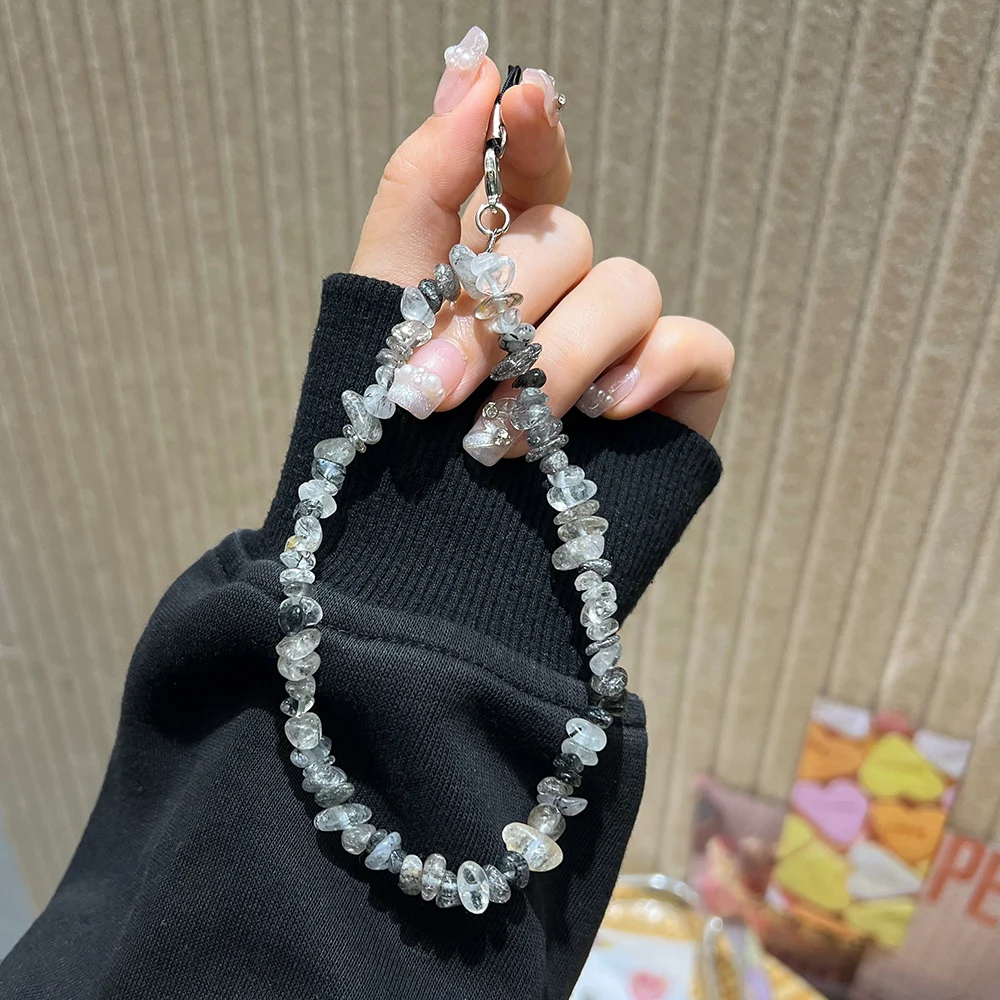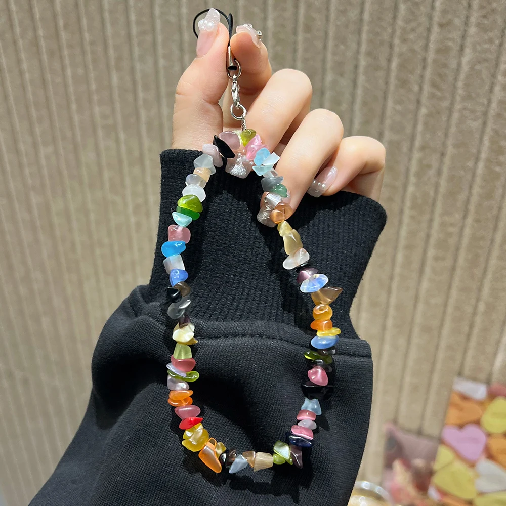 Cordón con cuentas de piedra Natural hecho a mano de cristal de piedra lunar, correa de muñeca antipérdida para teléfono móvil, llavero colgante con dijes para teléfono móvil