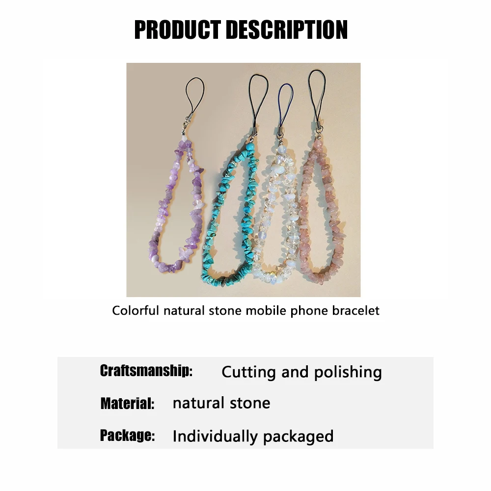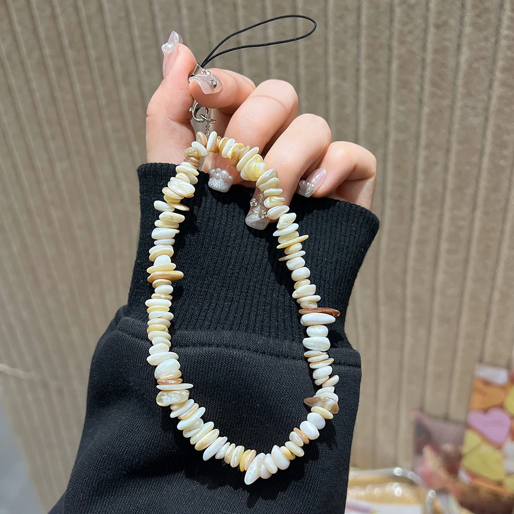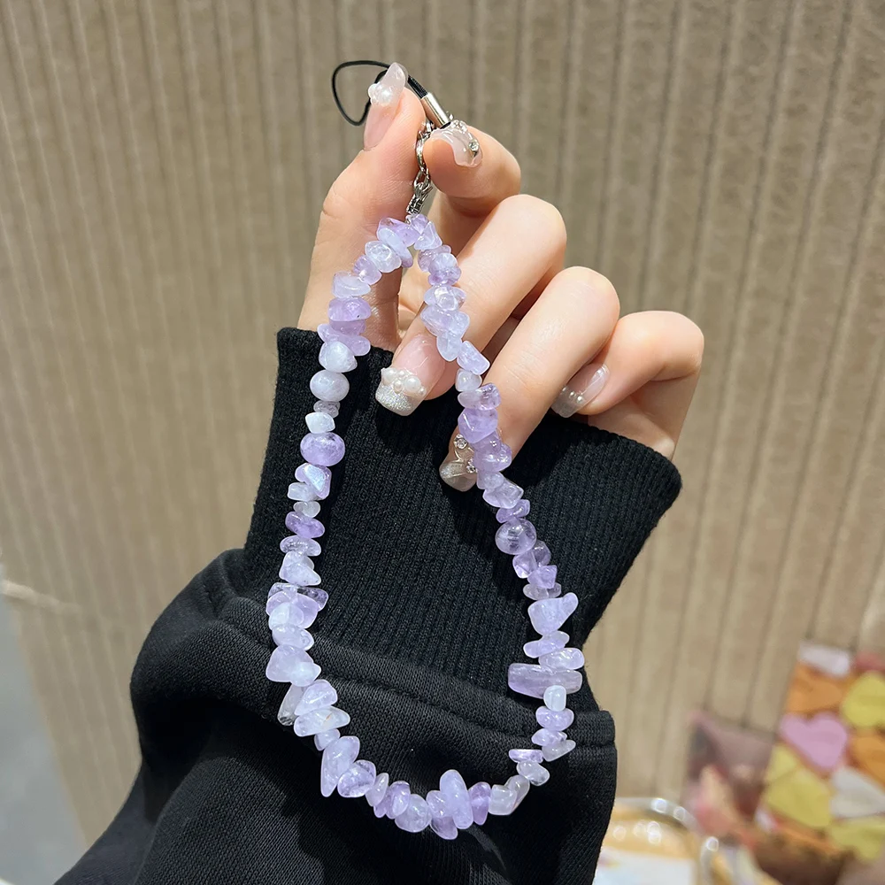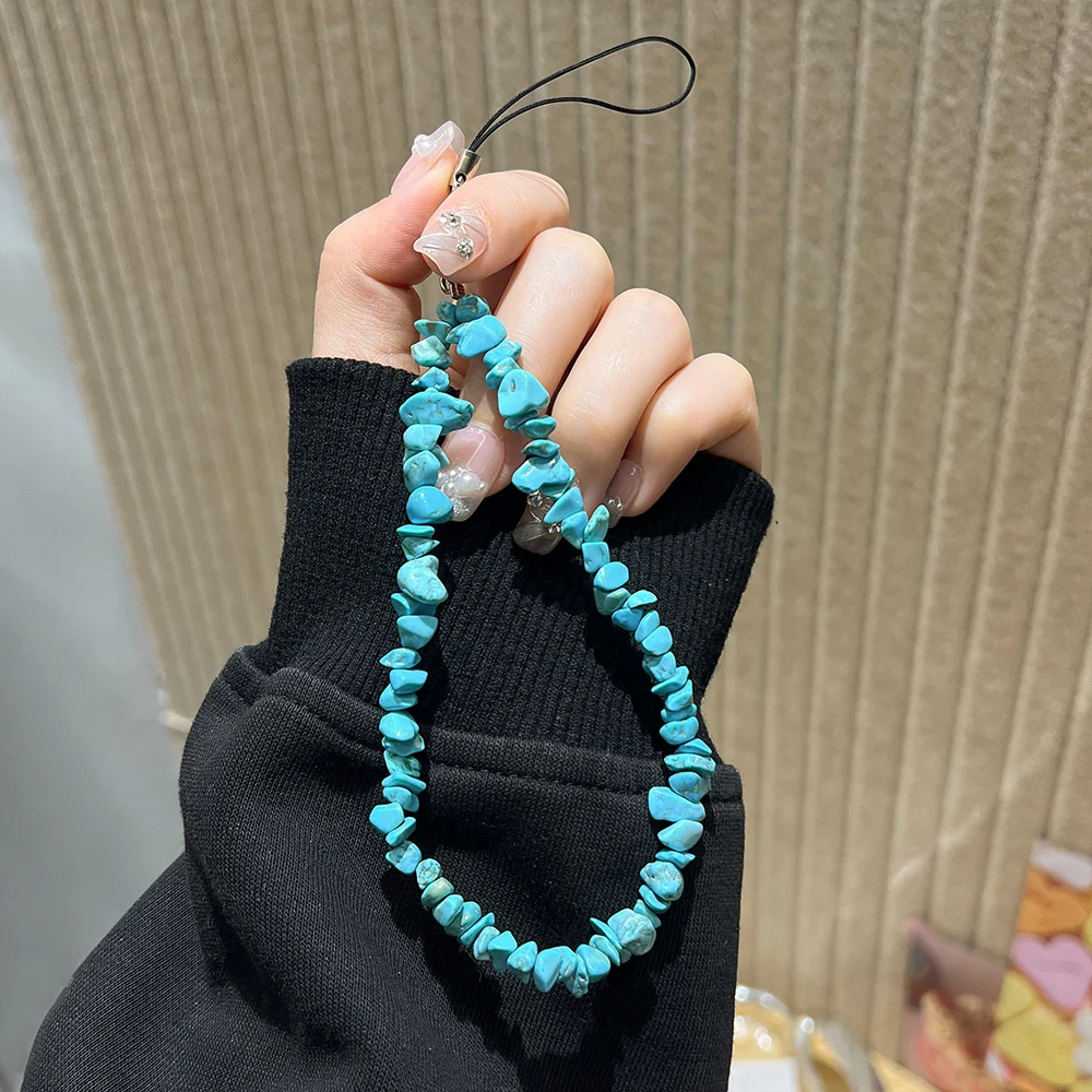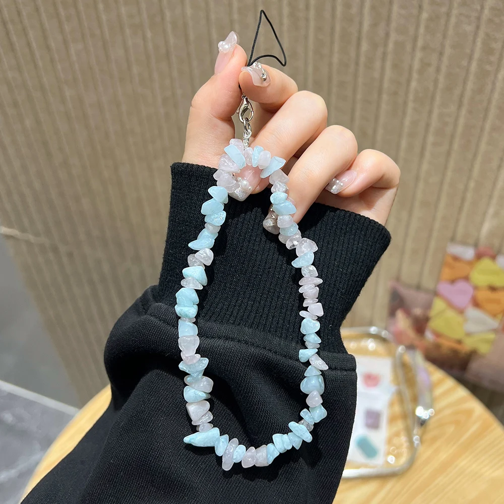 Cordón con cuentas de piedra Natural hecho a mano de cristal de piedra lunar, correa de muñeca antipérdida para teléfono móvil, llavero colgante con dijes para teléfono móvil
