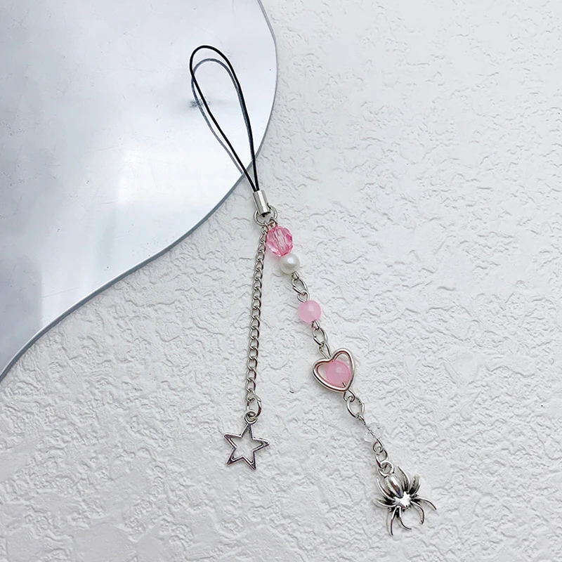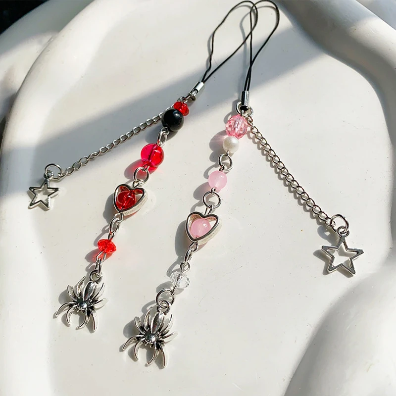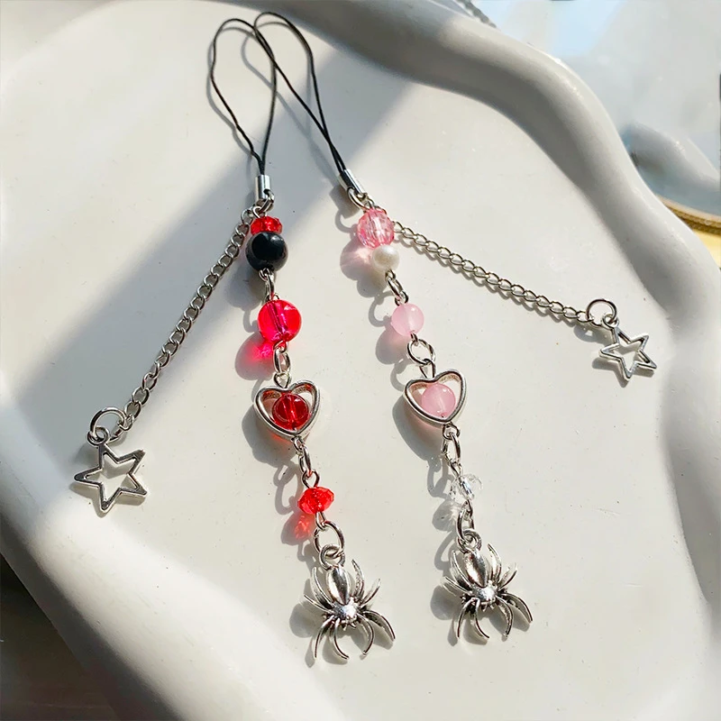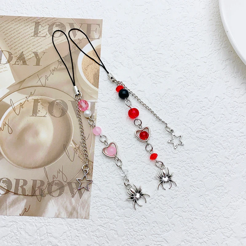 Comprar Cordón gótico Y2K con cuentas para teléfono móvil, colgante de araña creativo, cadena para teléfono, correa estética para teléfono móvil, cordón para teclado