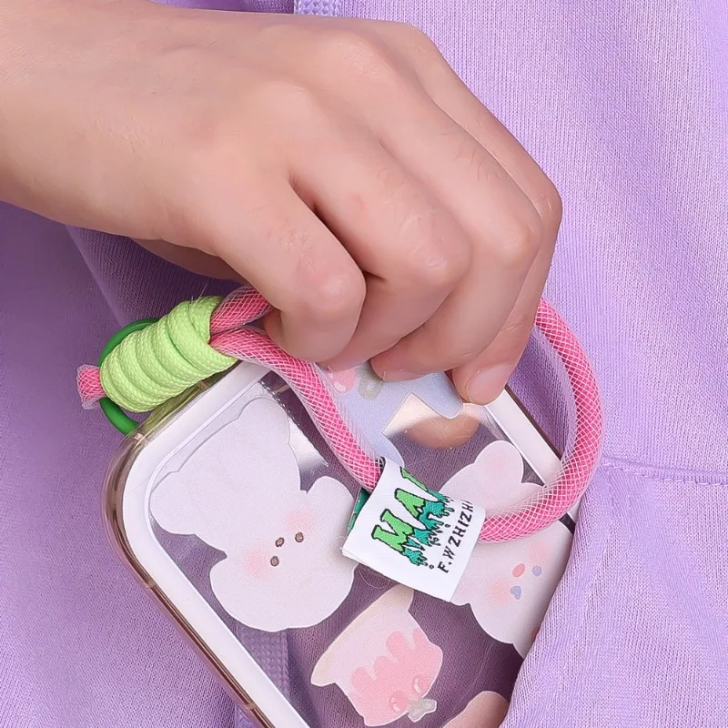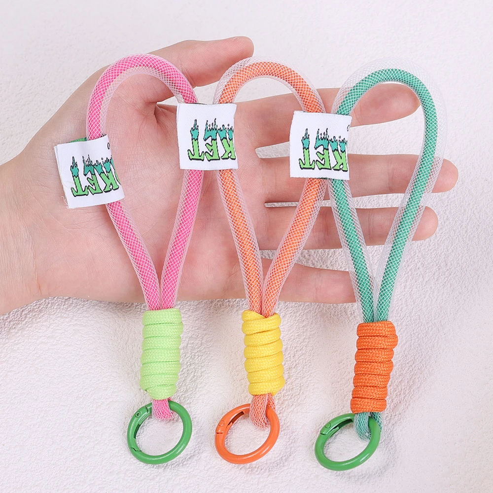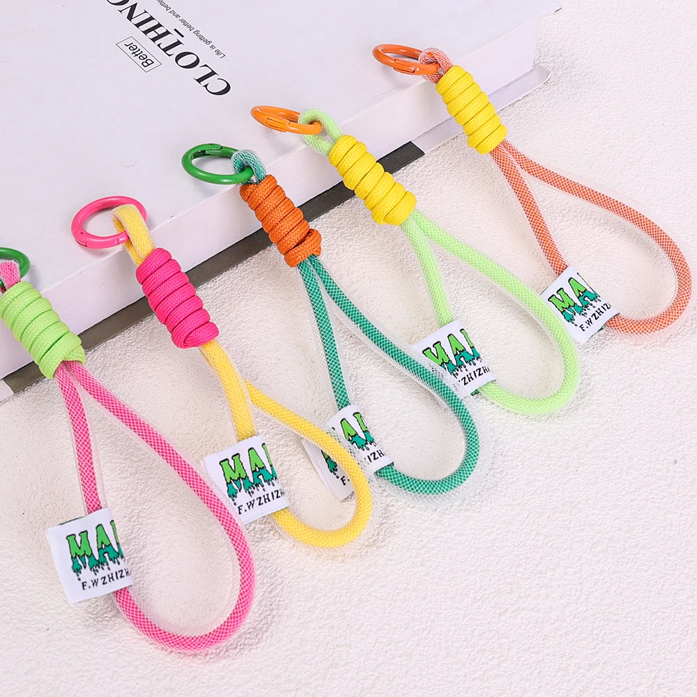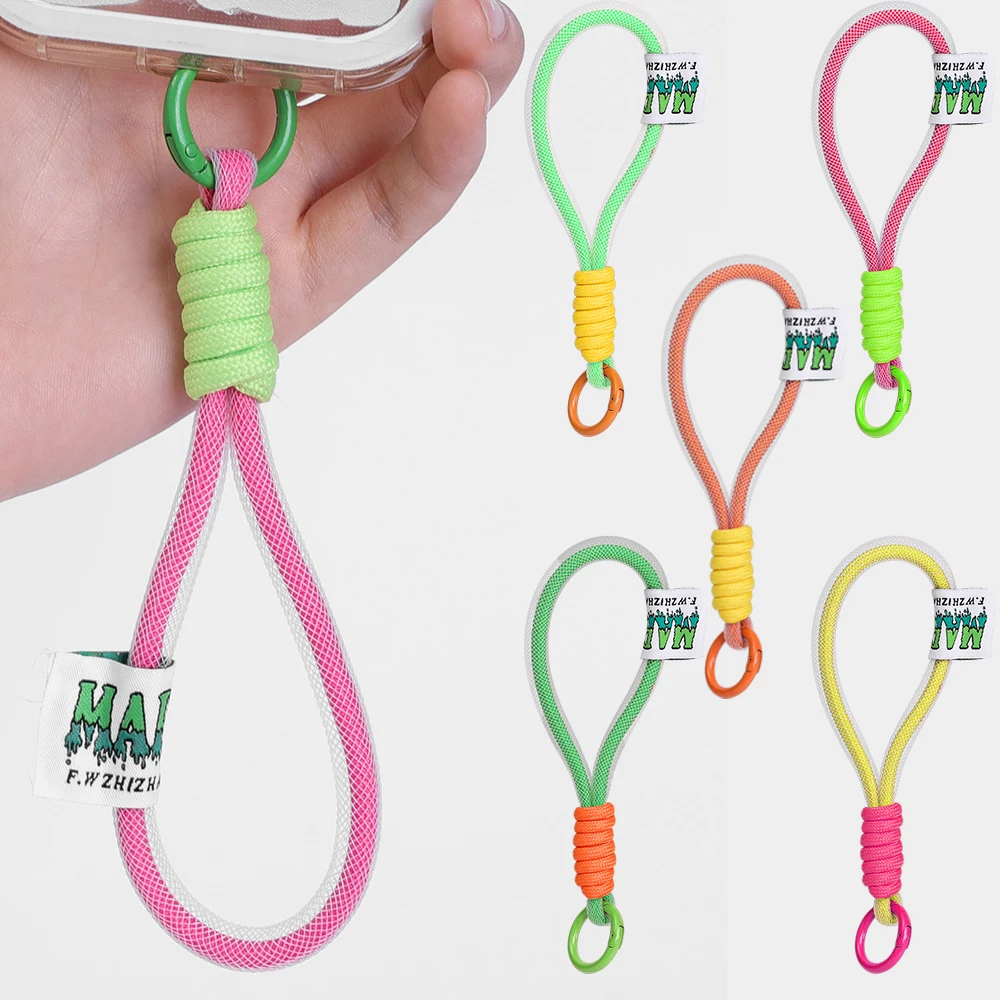Comprar Cordón de malla de nailon fluorescente para teléfono móvil, llavero corto, cuerda para Airpods Pro Air, pulsera antipérdida para teléfono móvil