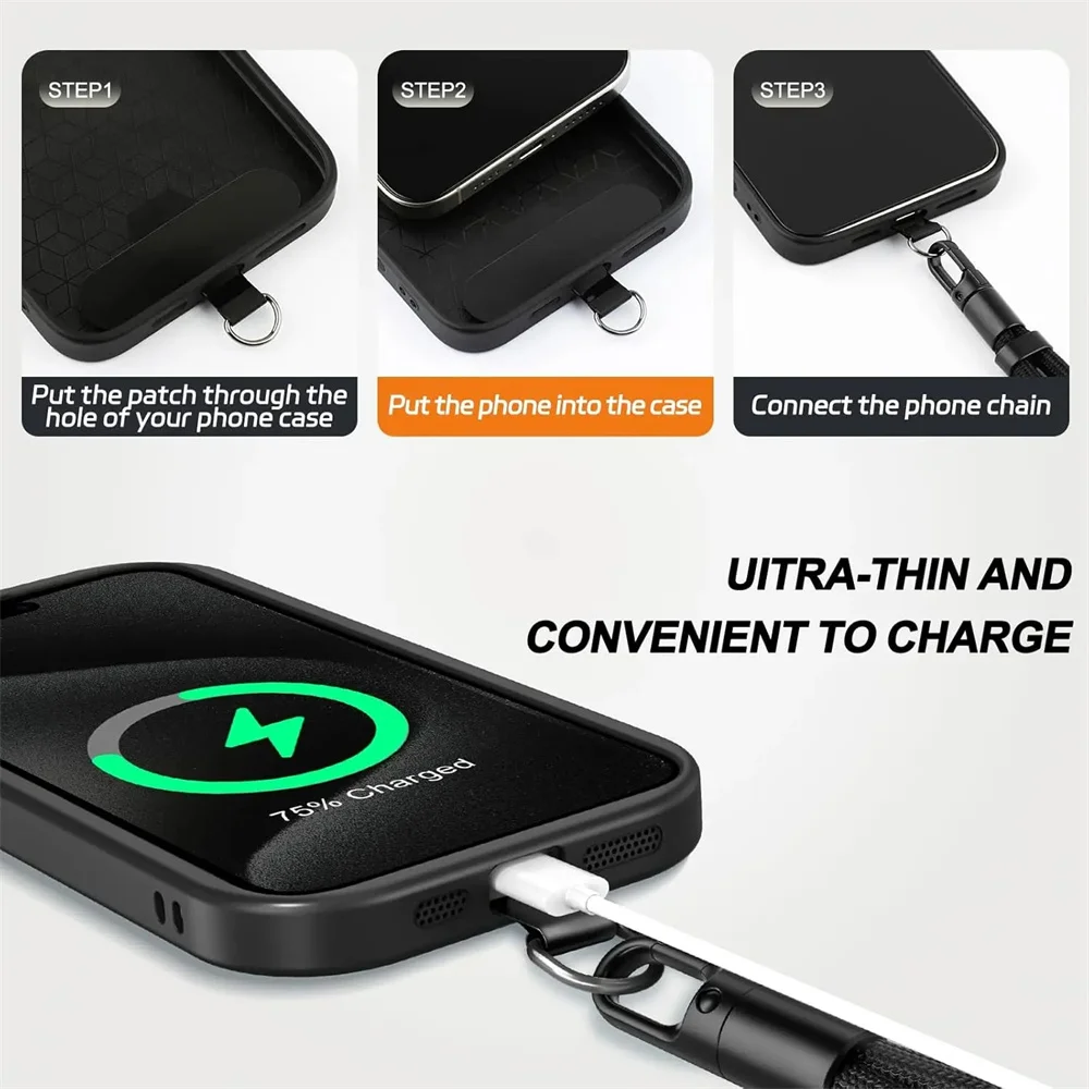 Cordón - Soporte de clip para correa de teléfono ajustable para todas las fundas de teléfono de 7 mm de grosor (cuello, hombro, bandolera / muñeca)