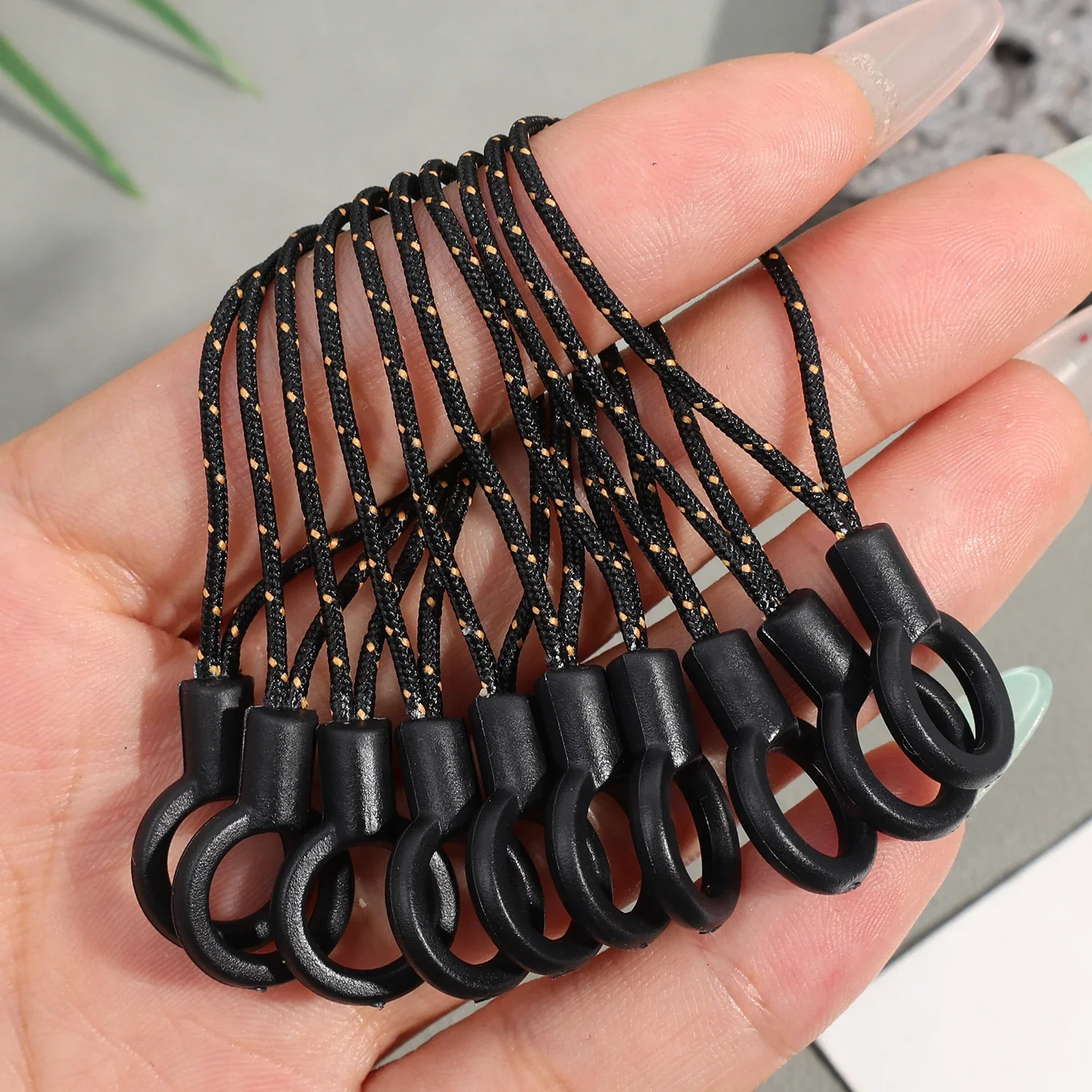 Material plástico y nailon de alta calidad: nuestros accesorios de cordón para teléfono móvil con anillo pequeño DIY están hechos de una mezcla duradera de nailon y plástico para garantizar que sean fuertes y duraderos.Este material es resistente al desgaste, perfecto para el uso diario y duradero.