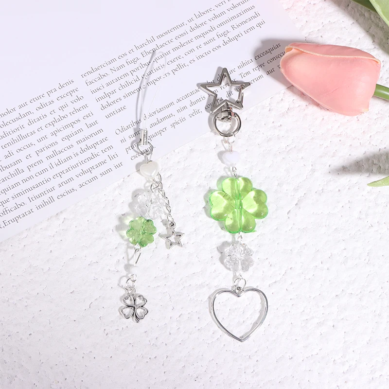 El trébol de cuatro hojas es un patrón que simboliza la buena fortuna y la suerte. Esta Cadena de teléfono móvil se basa en el tema del trébol de cuatro hojas y tiene un diseño creativo que puede traerle buena suerte durante todo el día.