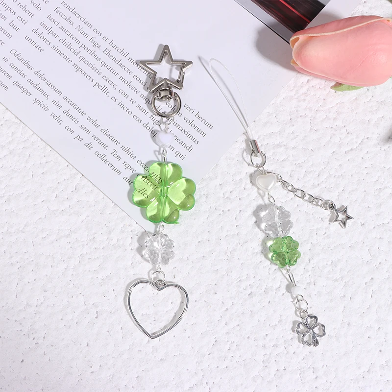 El paquete incluye: 1 colgante de llavero de cadena de teléfono móvil de trébol de cuatro hojas