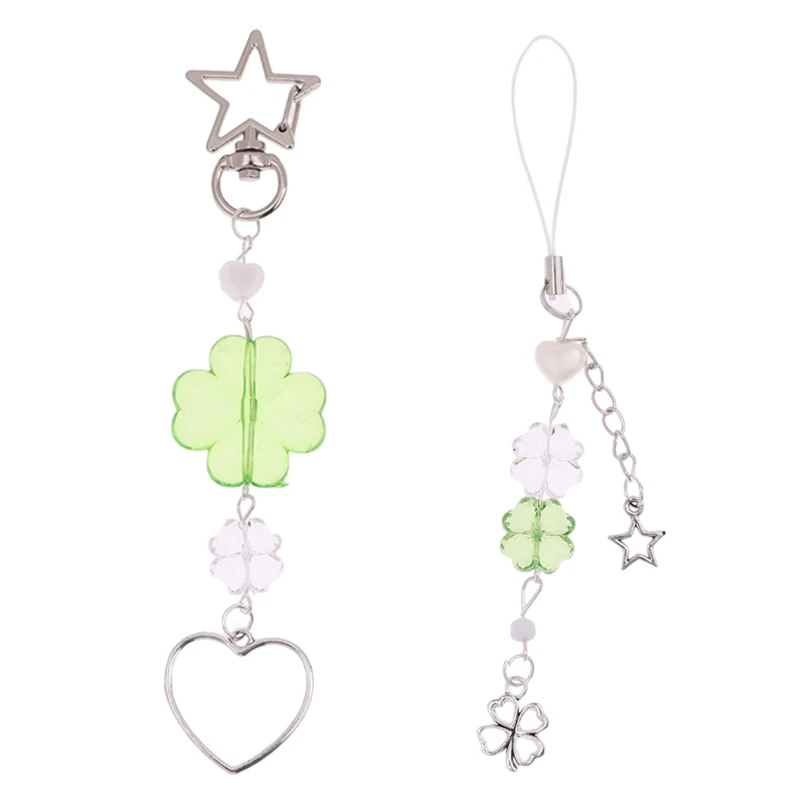 El paquete incluye: 1 colgante de llavero de cadena de teléfono móvil de trébol de cuatro hojas