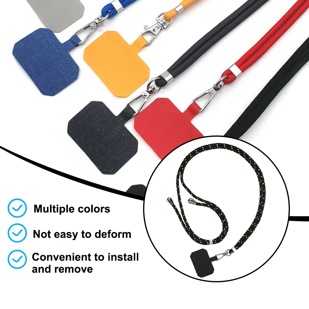Material de calidad: hecho de material de poliéster resistente al desgarro, el cordón del teléfono mantiene su cuello cómodo y no siente presión. El cordón es portátil, lo que garantiza una larga vida útil. No bloquea el puerto de carga: el cordón no bloqueará el puerto de carga, adaptándose a todos los tipos de teléfonos móviles, lo cual es conveniente para que lo use en cualquier lugar. Fácil de instalar: no se requieren herramientas para ayudar a instalar este cordón. Puede pegar fácilmente la almohadilla en la funda del teléfono sin caer en su fuerte adherencia. Evita caídas: el cordón viene con una hebilla de metal. El hardware duradero hace que el cordón sea lo suficientemente fiable y resistente como para evitar que el teléfono se caiga accidentalmente. Diseño universal: Este cordón es compatible con todos los tipos de teléfonos móviles del mercado. El diseño ajustable hace que el cordón sea adecuado para niños, adultos y ancianos. Mantenga las manos libres cuando haga otra cosa.