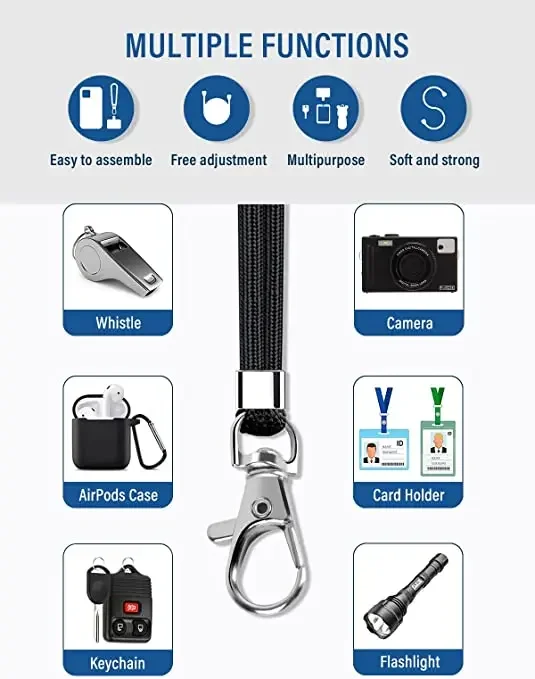 Especificaciones: Material: nailon, metal. Tamaño: La tarjeta mide 6,5x4 cm Longitud de la cuerda: aproximadamente 150 cm