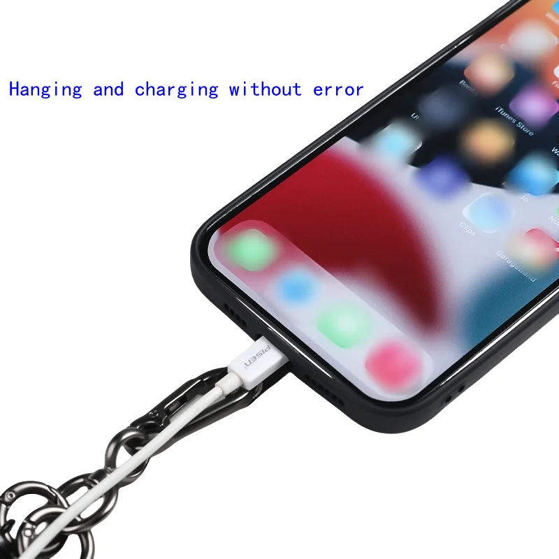 4.No se requieren herramientas, pase la almohadilla a través del orificio de carga de la funda del teléfono completamente cubierta, luego inserte su teléfono y conéctelo al cordón.