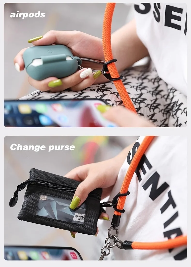 1. El cordón para teléfono celular es de baja elasticidad y resistente a la abrasión.Este cordón para teléfono multiusos de alta calidad es ideal para aplicaciones en interiores y exteriores. Con un gancho de metal inoxidable para sujetar sus llaves, tarjetas de identificación, billetera de hilo y otros accesorios.