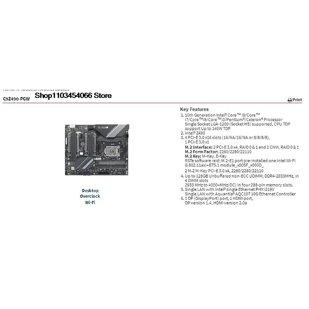Comprar Core i9/i7/i5/i3 LGA-1200 DDR4-2933MHz de 10. a generación para placa base WiFi de escritorio Supermicro C9Z490-PGW