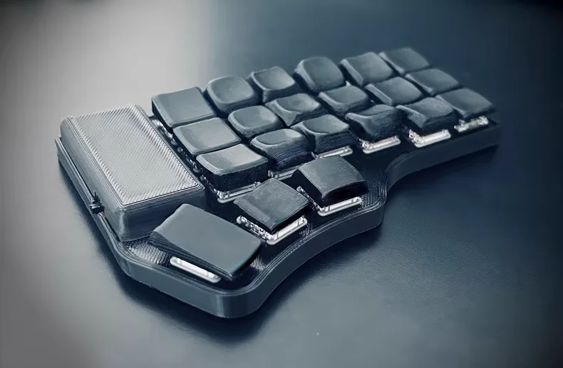 2. Minimalist screwless design, skin-friendly texture, fully wrapped, wear-resistant, scratch-resistant and drop-resistant shell, extremely thin and light, no foot pad and no wrist rest. Including flat keycaps, the full thickness is 14.9 mm; weighing 110 grams in one hand.