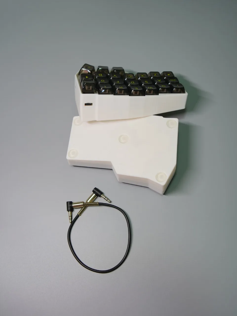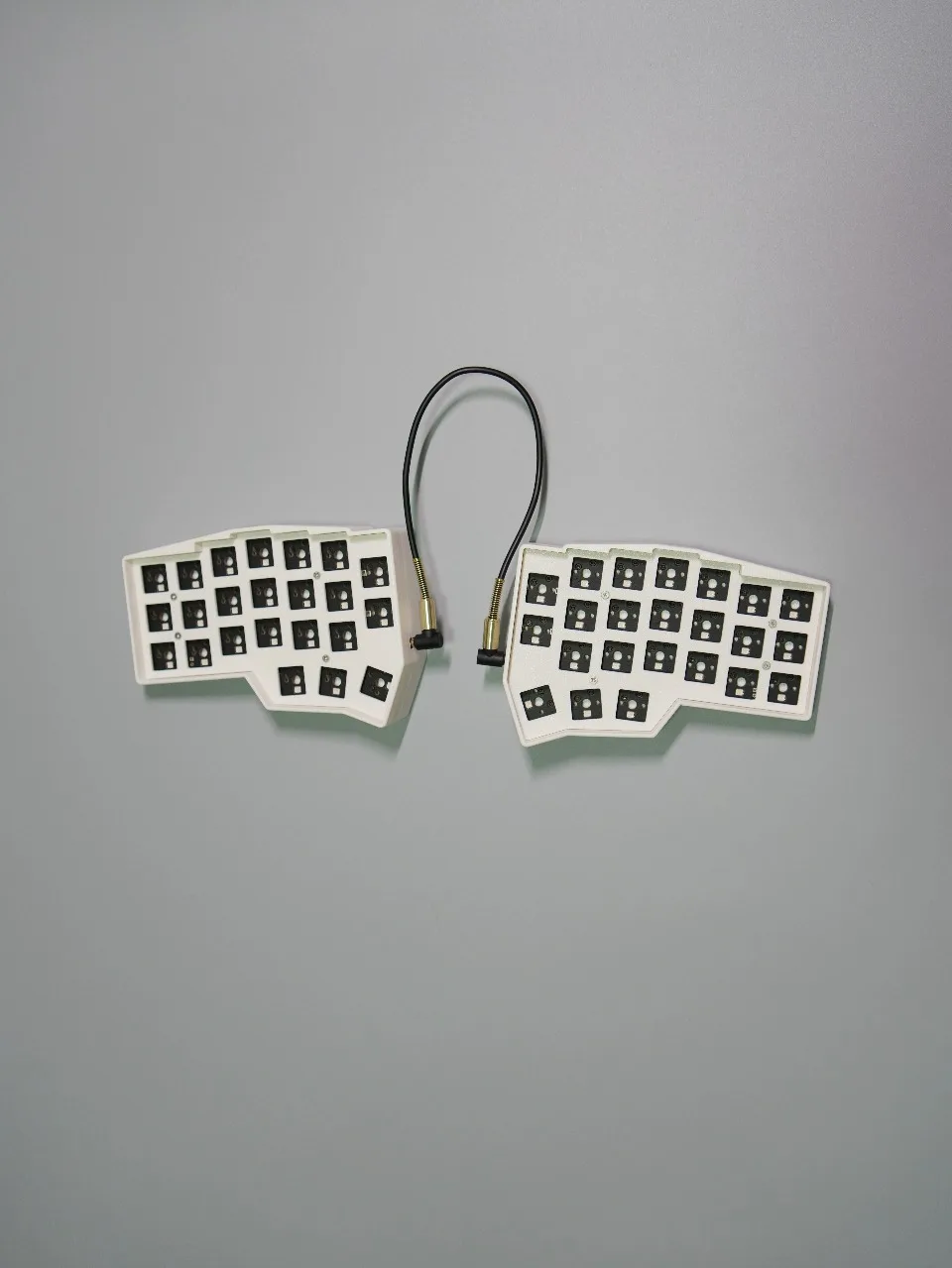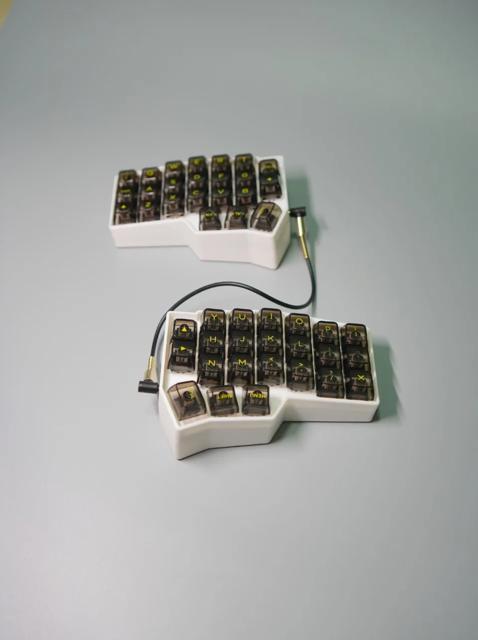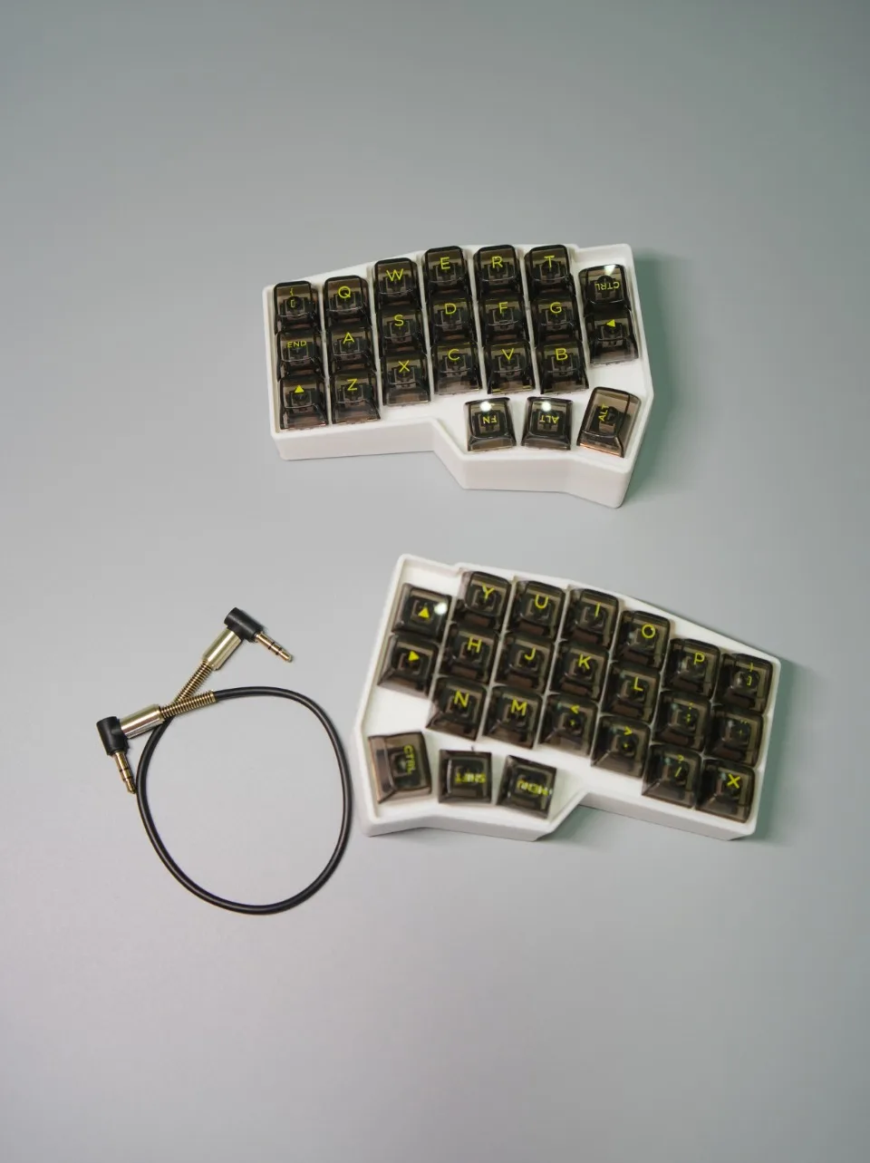 El teclado está hecho de carcasa blanca y teclas transparentes negras, con interruptores de madera gris; El kit es un producto sin teclas ni interruptores.
