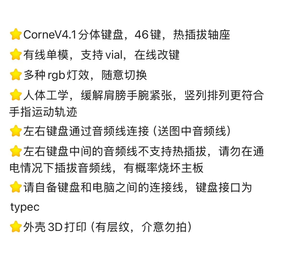 Teclado dividido CorneV4.1, 46 teclas, asiento de eje intercambiable en caliente