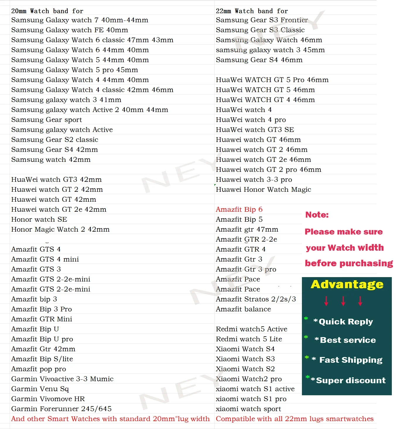 Y otros relojes tradicionales o inteligentes con un ancho de asa estándar de "20 mm".