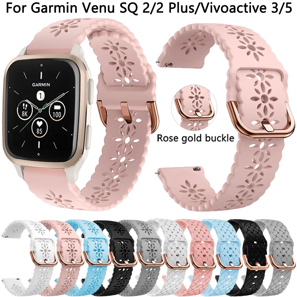 Comprar Correa de 20mm para reloj inteligente Garmin Venu SQ 2 Plus, repuesto de pulsera de silicona para Vivoactive 3 5 Forerunner 245 645 MUSIC