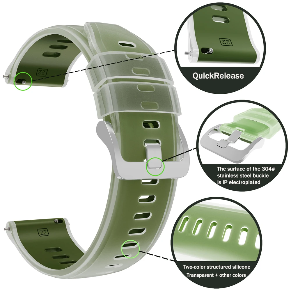 Correa de 22mm para POLAR Vantage M3 M2 M V3 banda GRIT X X2 Pro pulsera de silicona transparente de dos tonos Correa para COROS PACE 4 3 cinturón