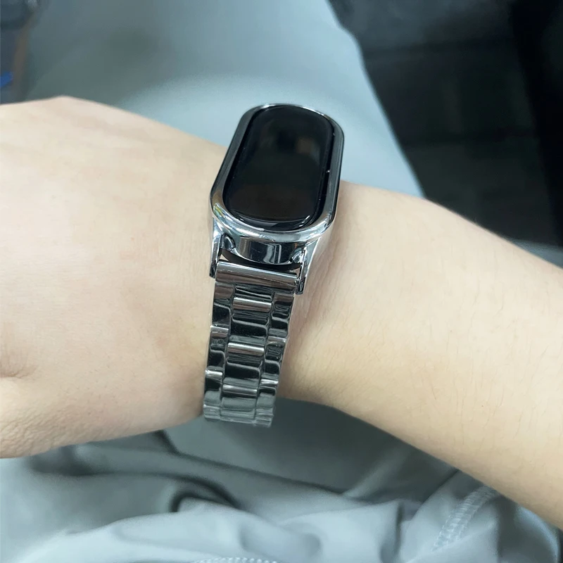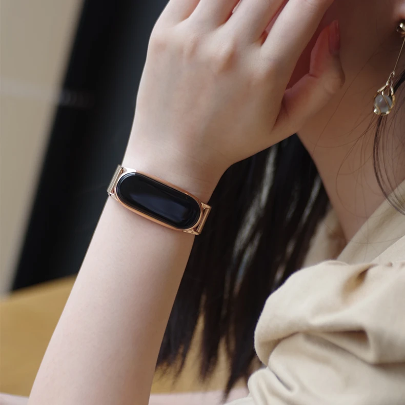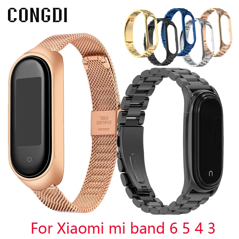 Comprar Correa de acero inoxidable para Xiaomi Mi Band 6 y 5, repuesto de pulsera de Metal para Mi Band 3 y 4