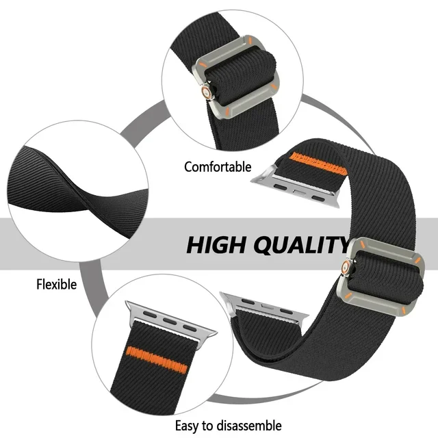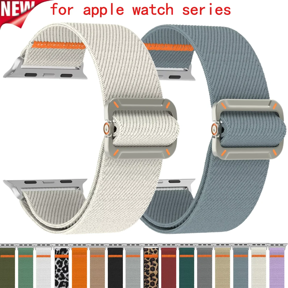 Comprar Correa para Apple Watch band 44mm 45mm 49mm 42mm 40mm 41mm 46mm pulsera Solo de nailon elástico serie 9 10 8 7 6 5 4 SE Ultra