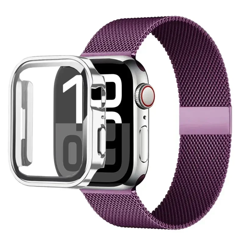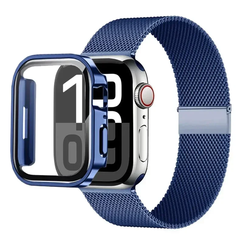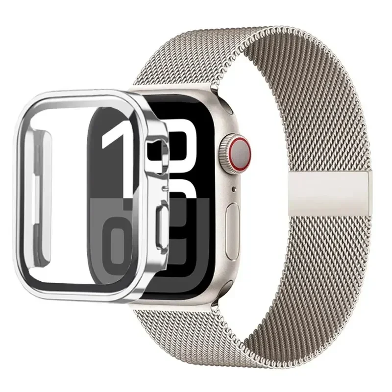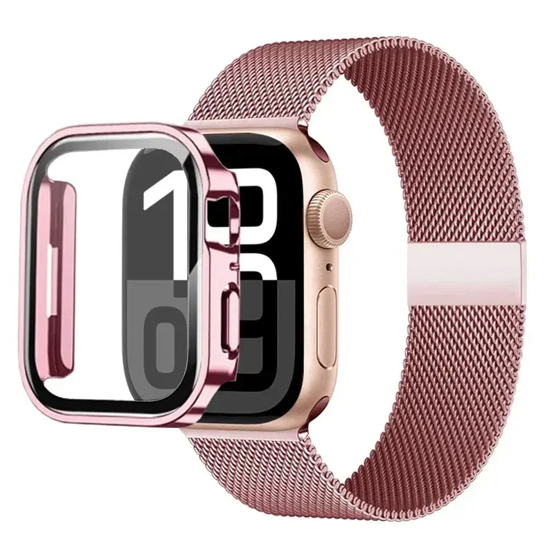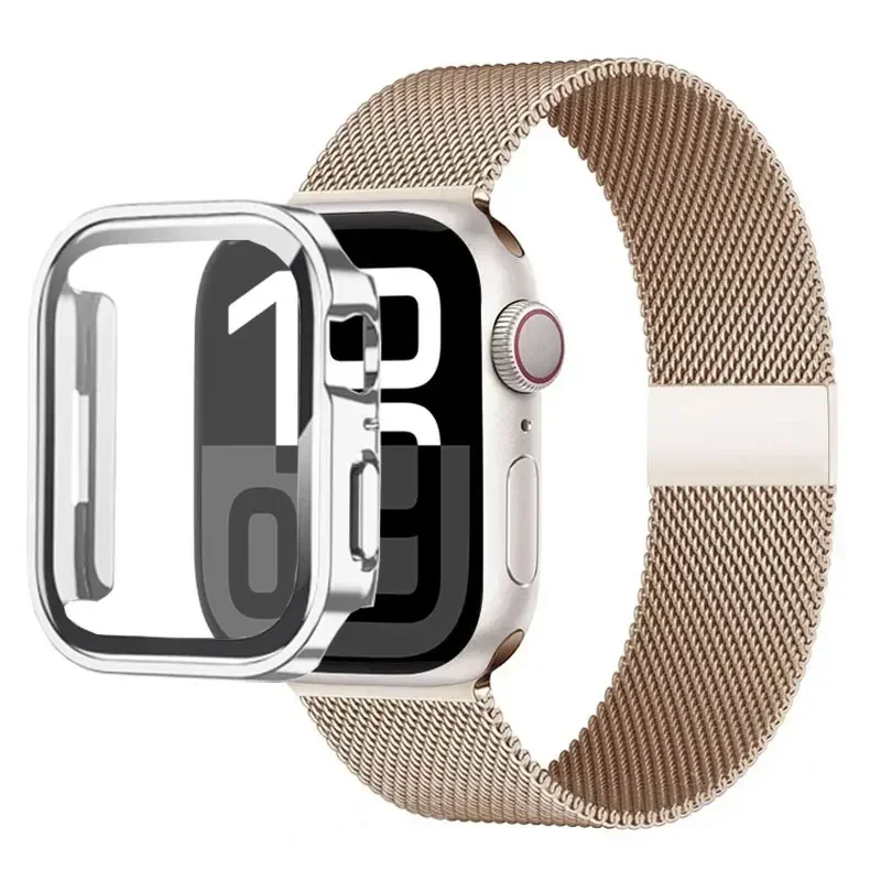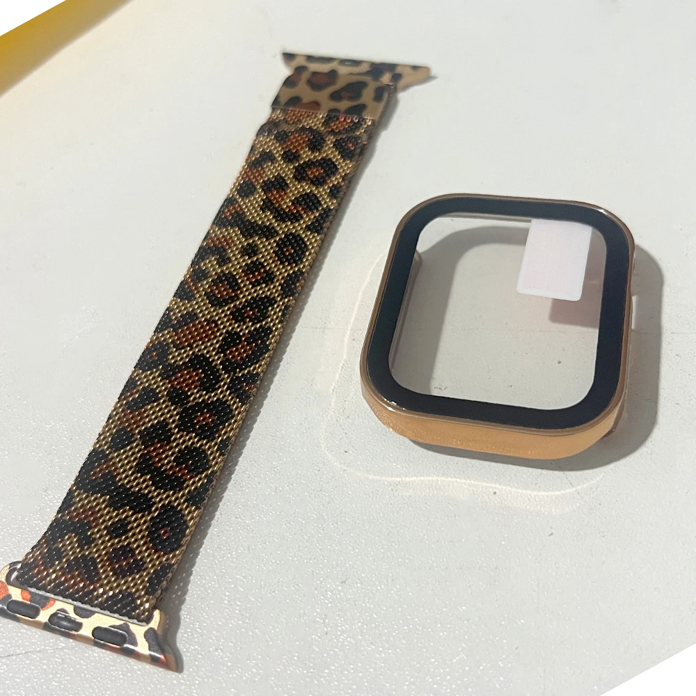 Comprar Correa de bucle milanés para Apple Watch Ultra 49mm banda 44mm 40mm 41 45mm pulsera de leopardo dorado y plateado + funda iWatch 9 8 7 6 5 4 3 SE