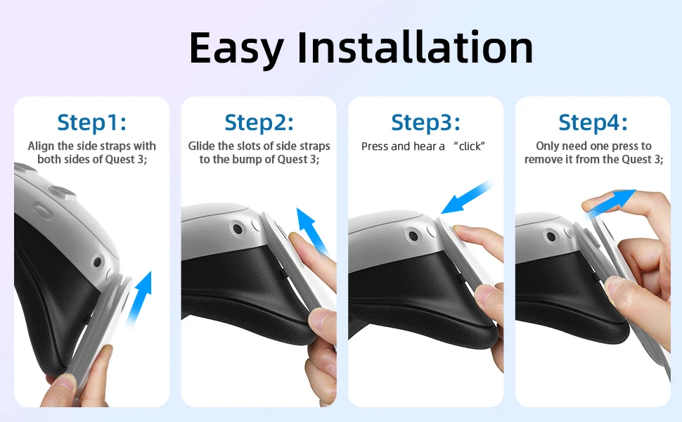 【Correas laterales superior】La correa para la cabeza está hecha de material de polímero mejorado, que es ecológico y tiene una dureza y estabilidad extremas, 15.000 + La prueba de flexión garantiza durabilidad y larga duración, nunca tendrá que preocuparse de que la correa lateral se rompa, mejorará la experiencia de uso y, por lo tanto, hará que el proceso de realidad virtual sea más agradable. (Solo compatible con Quest3)