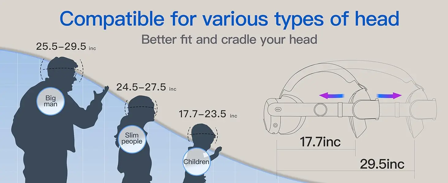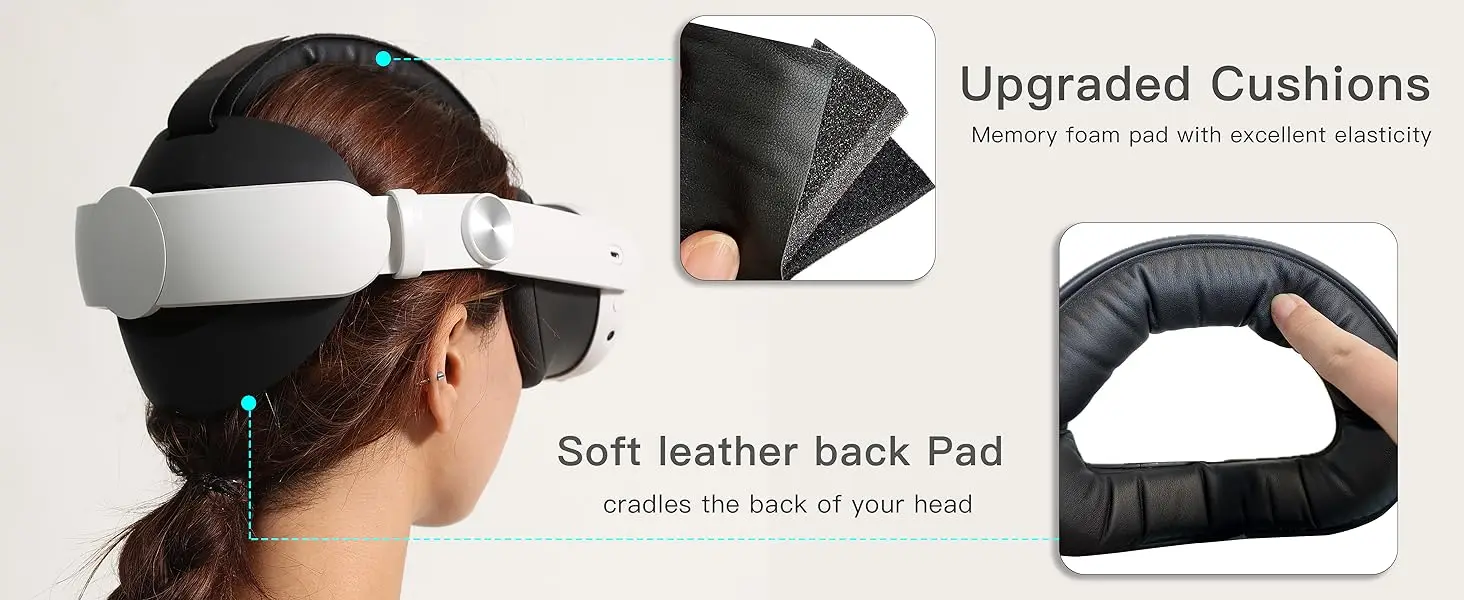 Correa para la cabeza cómoda: cojín cómodo con espuma viscoelástica suave interior con soporte para la cabeza más grande, lo que hace que la correa para la cabeza sea más cómoda y reduce la presión facial.La correa para la cabeza para Quest3 es silenciosa y cómoda, incluso si la usas durante mucho tiempo.