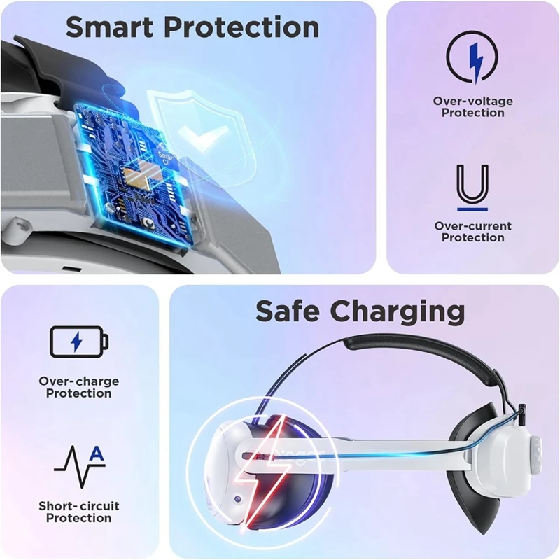 Comprar Correa de cabeza de batería Compatible con Meta Quest 3, correa de cabeza recargable para extender el tiempo de reproducción y comodidad para auriculares VR, accesorios