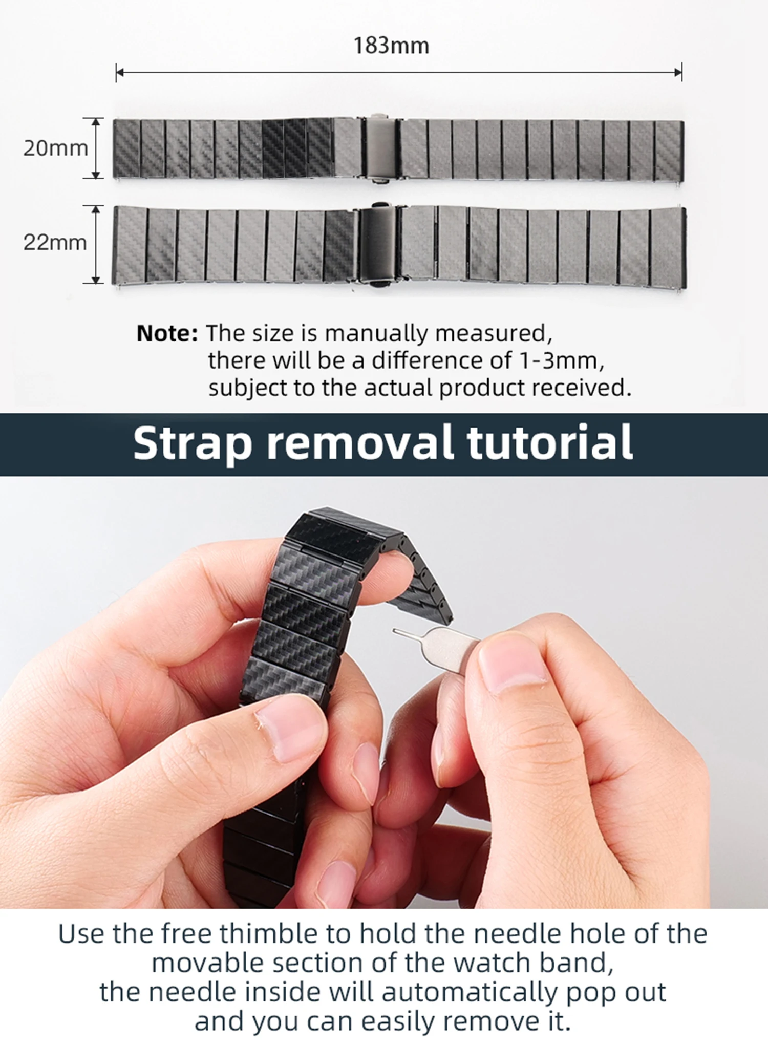 Comprar Correa de carbono para reloj Samsung Galaxy, pulsera ligera de 44mm para Huawei GT2 2E GT3, Honor GS Pro, Amazfit GTR3, 46mm