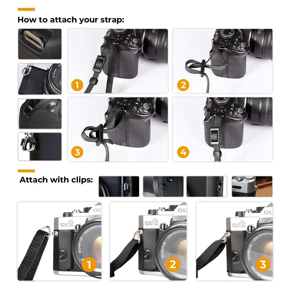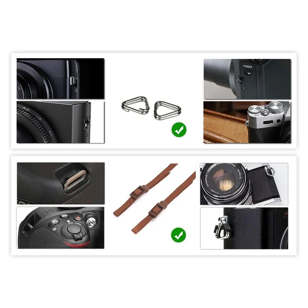 [Sujeta todas las cámaras y NO SOLO para las cámaras] La última versión mejorada es con un triángulo de metal que hace que la correa sea perfecta con seguridad y perfectamente compatible con todas las marcas de cámaras DSLR como Canon, Fuji, nikon, Olympus, Panasonic, Pentax, Sony, Instax, Polaroid, etc., mientras que se puede utilizar para otros equipos como algunos Binoculares, monoculares, telémetros, herramientas, etc.