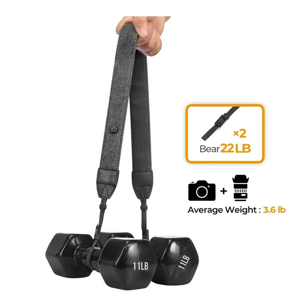 [Longitud ajustable] Longitud ergonómicamente ajustable en ambos extremos para todos los fotógrafos a diferentes alturas, longitud total: 133cm; longitud de la correa: 71cm; ancho de la correa: 3,8 cm.