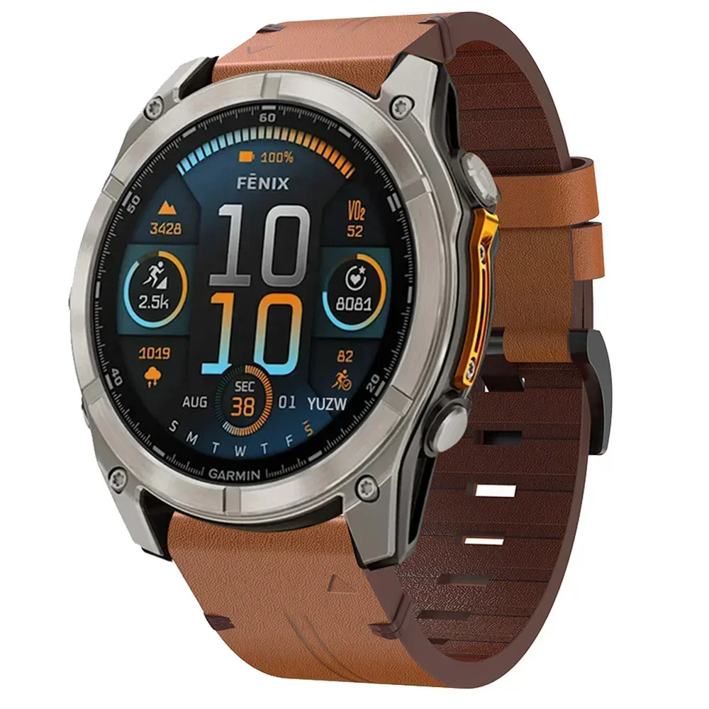 Correa de cuero de 22 mm y 26 mm para Garmin Fenix E 8 47 mm 51 mm/7 7X 6 X 6 Pro 5X Plus 3HR/Forerunner 965 955/Enduro 2 3/Instinct 2X Band