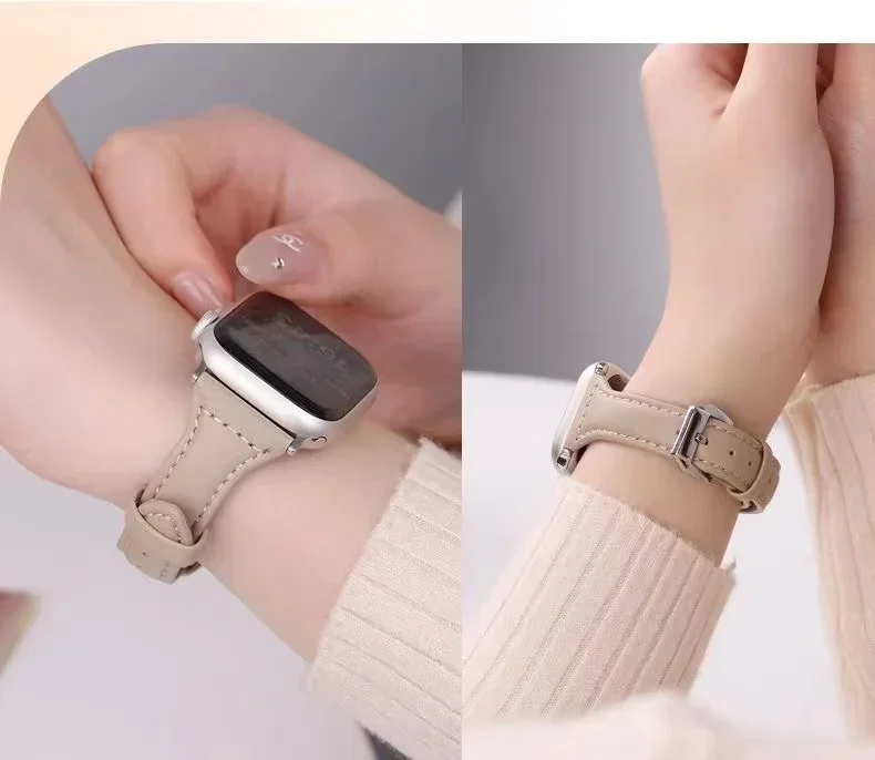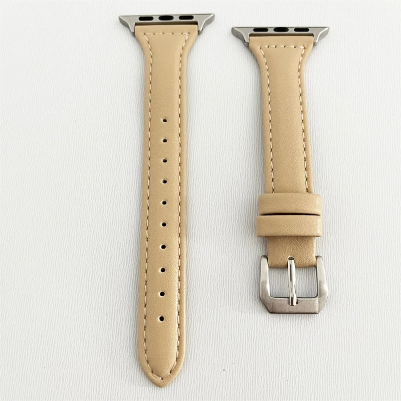 Correa de cuero delgada para Apple Watch 10 11, 46mm, 40mm, 44mm, 45mm, 42mm, 41mm, pulsera deportiva iWatch series 9 8 SE ultra 2 3 49mm