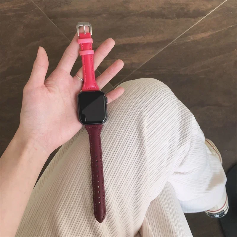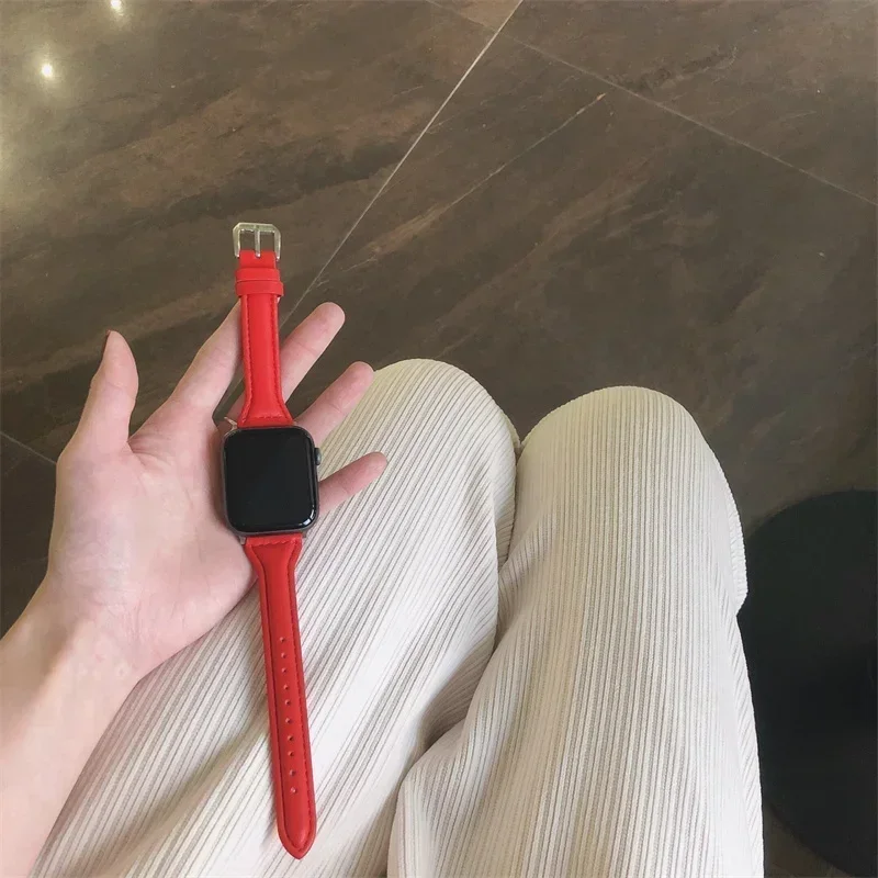 Correa de cuero delgada para Apple Watch correas 45mm 44mm 40mm 41mm 46mm Ultra 2 49mm 44mm pulsera apple watch 10 8 8 7 se 5 4 6