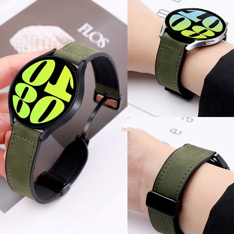 Comprar Correa de cuero y silicona de 22mm y 20mm para Samsung Galaxy Watch 3 4 5 6 7 FE 40mm 44mm 4/6, banda magnética clásica Gear S3 S2 Active 2