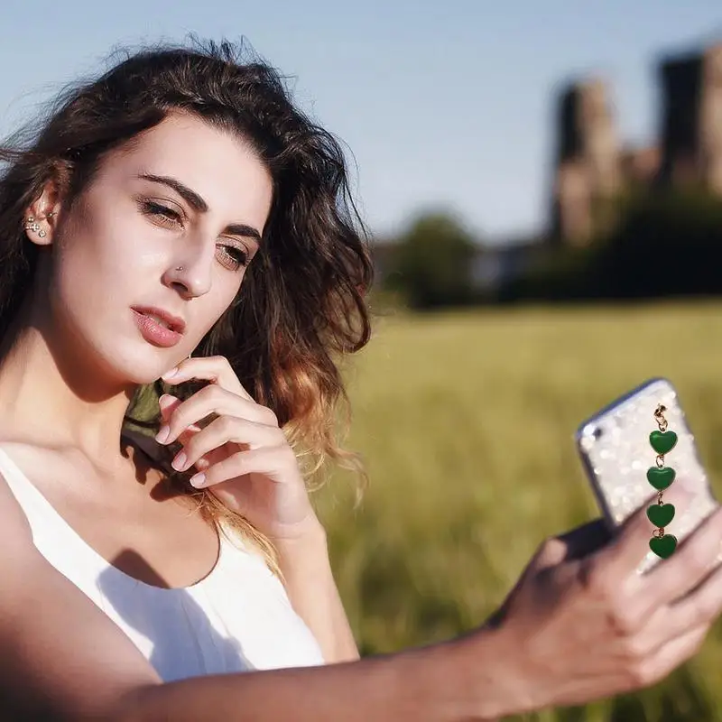 Comprar Correa de funda de teléfono galvanizada, cordón de corazón de amor, correa de muñeca antideslizante, cadena de encanto de teléfono para niñas, decoración