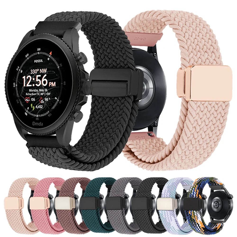 Comprar Correa con hebilla magnética de 20mm y 22mm para Fossil Gen 6, 44mm Gen 5/5e LTE, banda trenzada de 45mm, reloj inteligente híbrido, pulsera de nailon con bucle HR