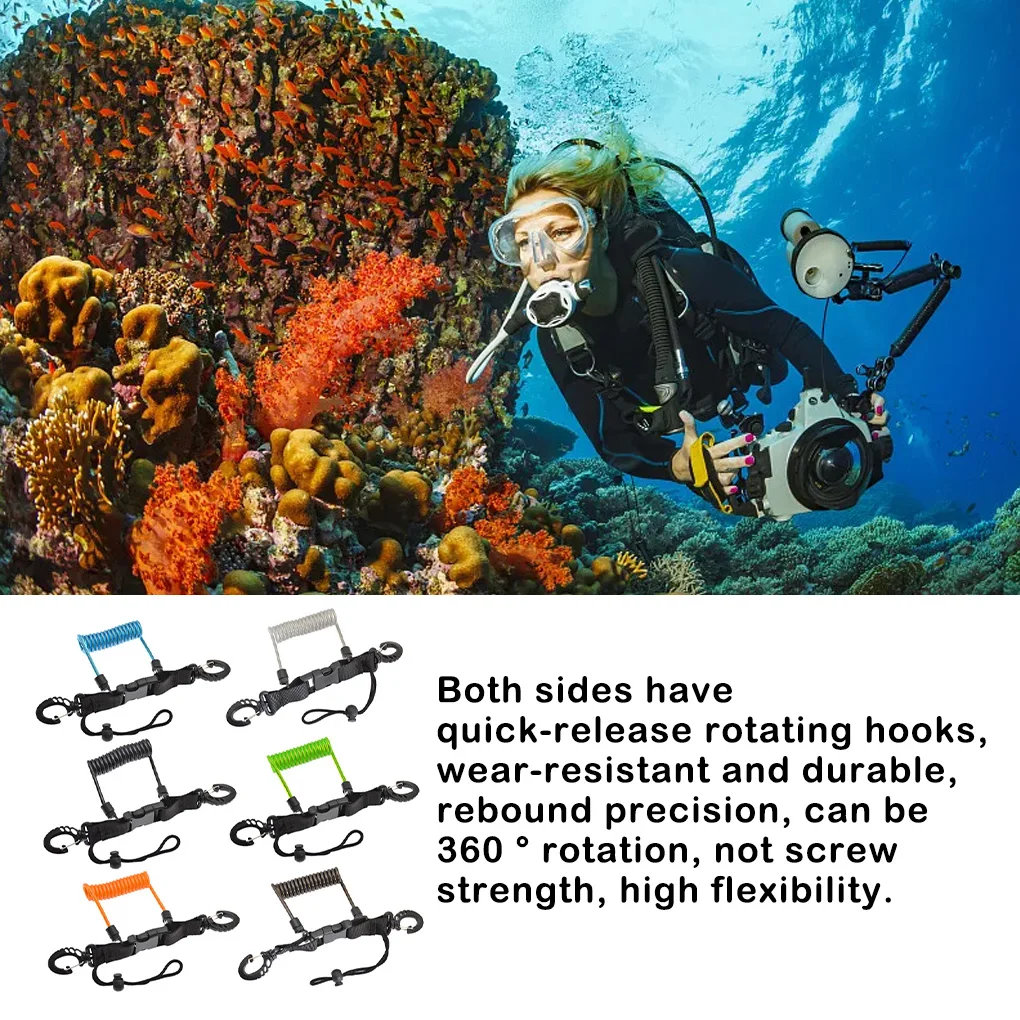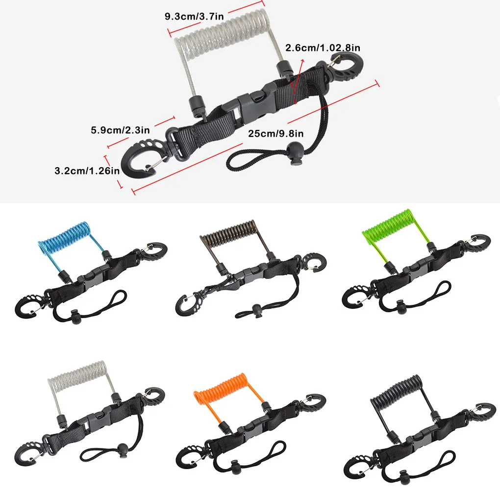 Multifuncional: el cordón para objetos puede colgar varios objetos de buceo con una hebilla de bloqueo, lo que lo hace resistente y seguro de usar.