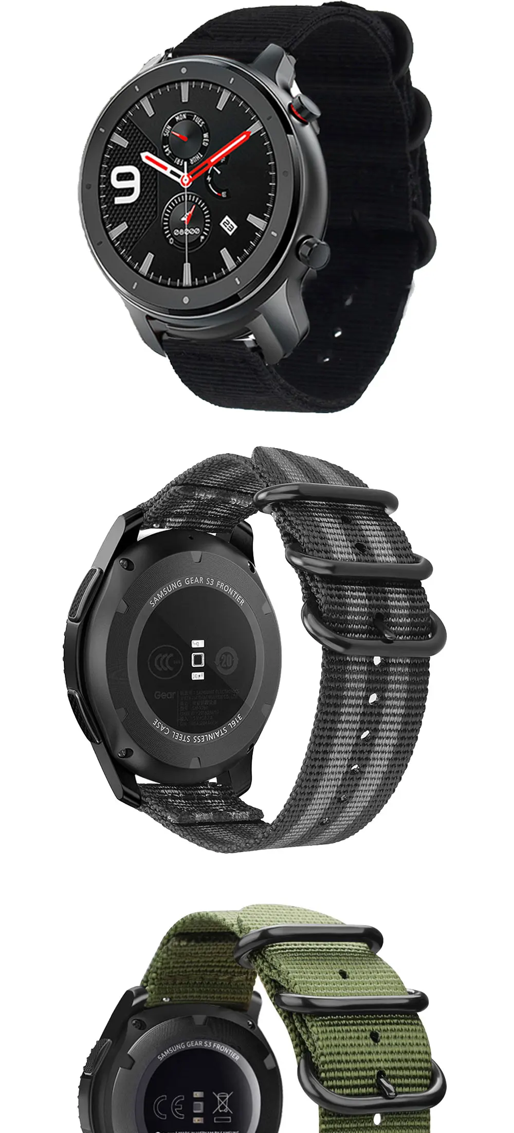 Correa de lona de nailon para Xiaomi huami Amazfit Stratos 3 2 2S /PACE/GTR 47MM correa de reloj para Huawei Watch GT GT2 correas de 46mm