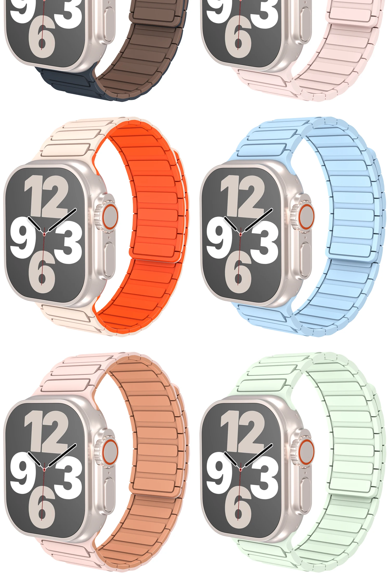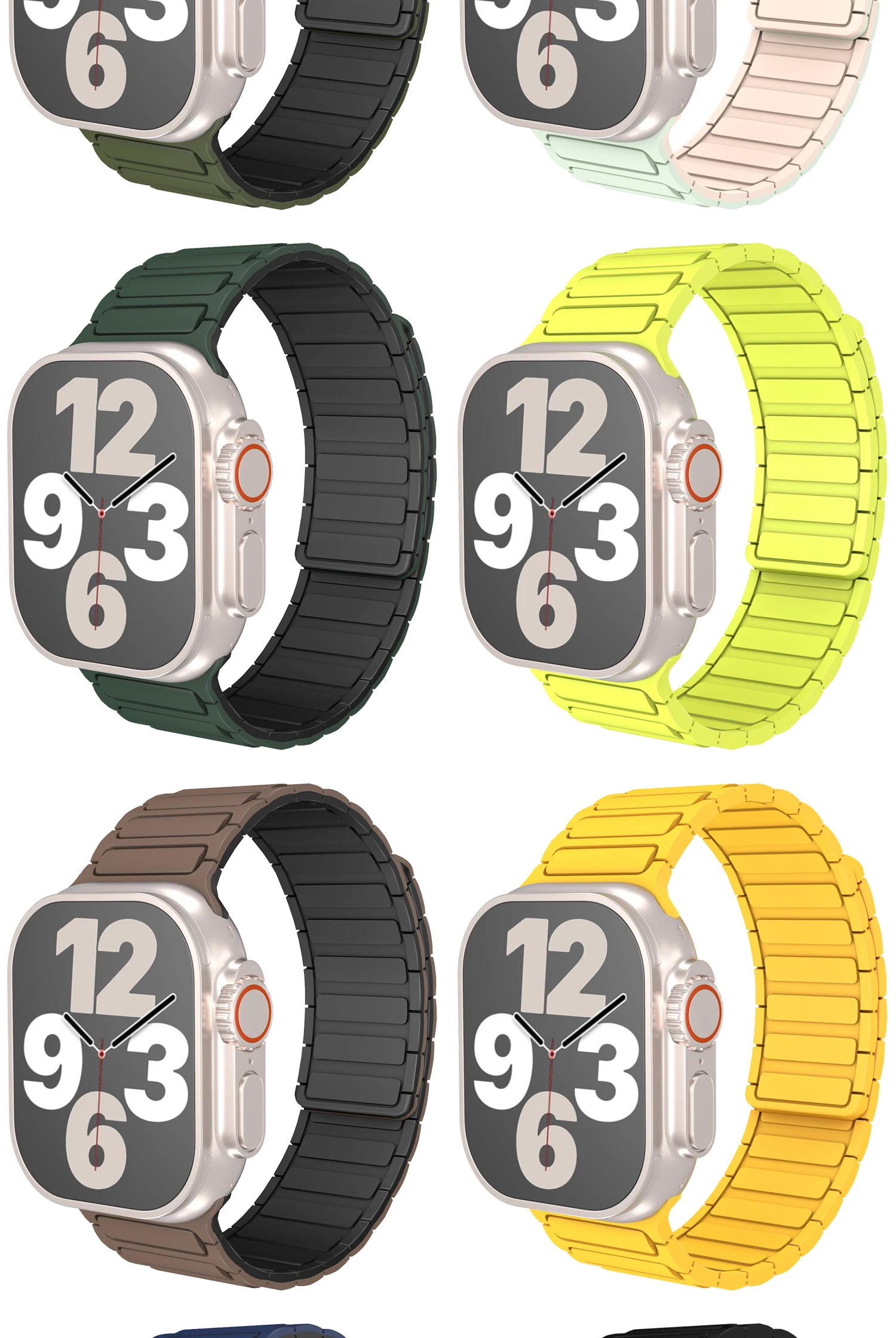 Comprar Correa magnética para Apple Watch Ultra 49mm 45mm 41mm 42mm 46mm 44mm 40mm pulsera de silicona iWatch Series 9 8 10 7 6 5 4 38mm
