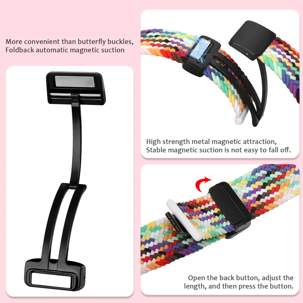 Correa magnética de nailon para Samsung Galaxy Watch8 40/44mm, banda elástica tejida sin huecos para Samsung 8 Classic 46mm, pulsera deportiva
