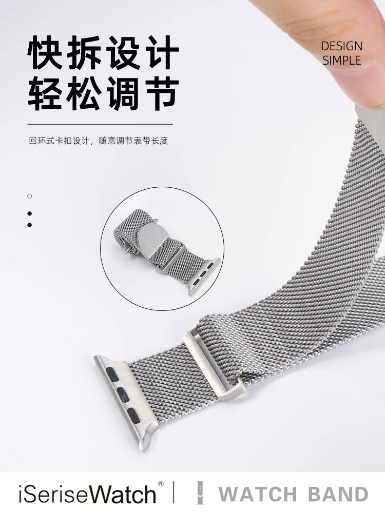Comprar Correa de malla transpirable para iWatch S8, Correa magnética milanesa de Metal para Apple Watch 6/5SE/7 Series, 40/44/45mm y 41mm