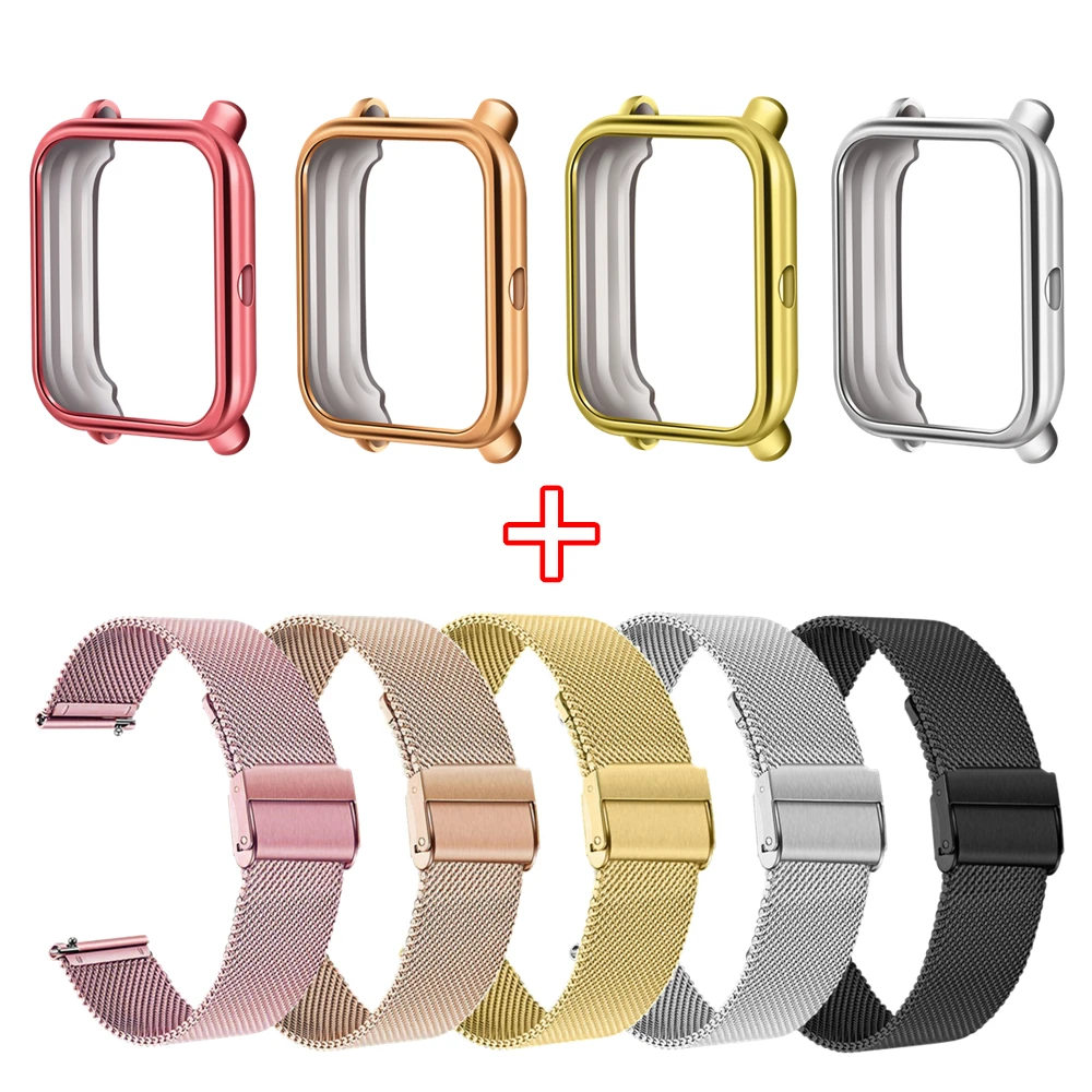 Comprar Correa de Metal 2 en 1 para reloj Xiaomi Amazfit GTS 2 Mini / Bip U/Lite, funda protectora de repuesto, correa de reloj